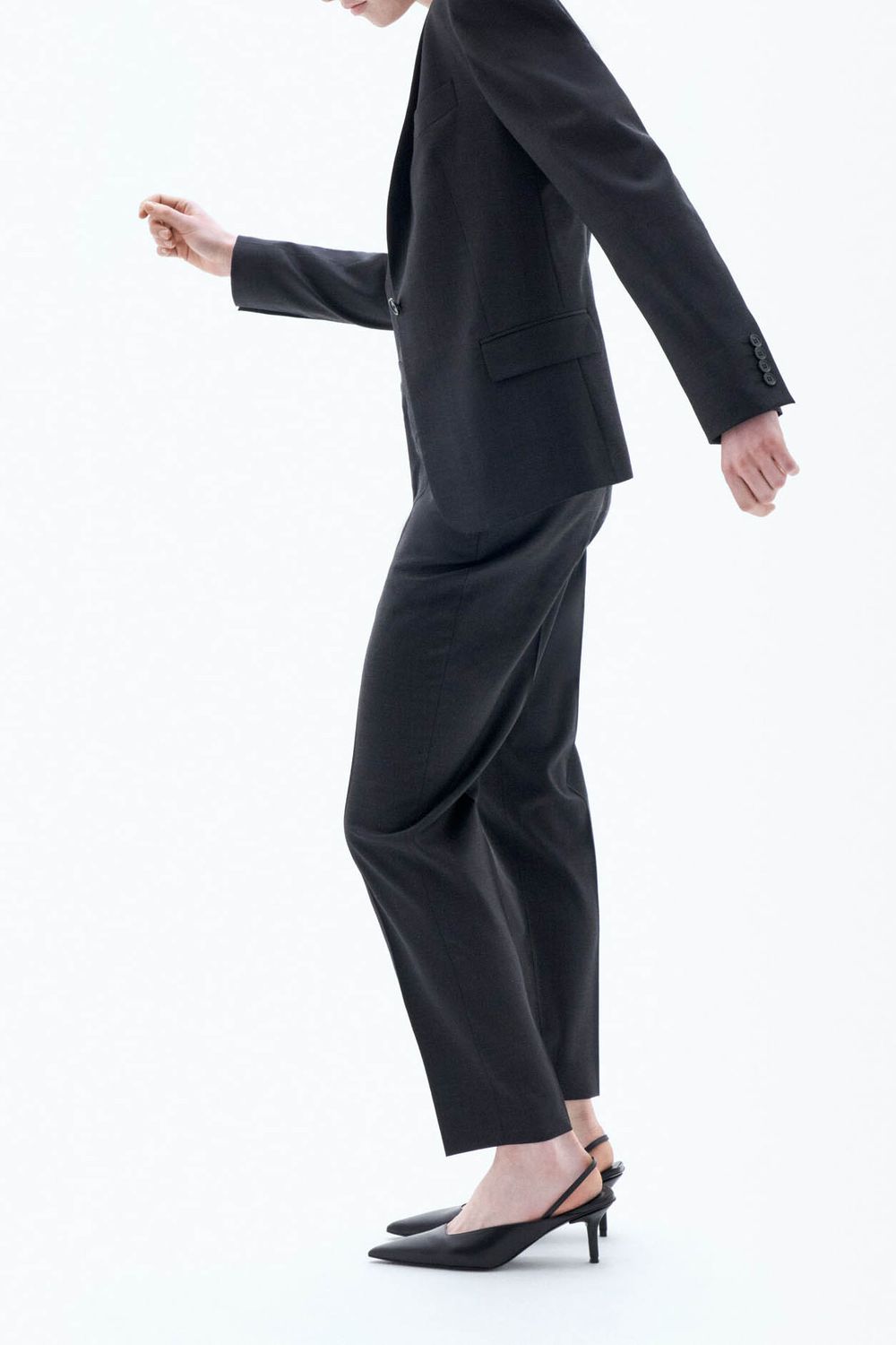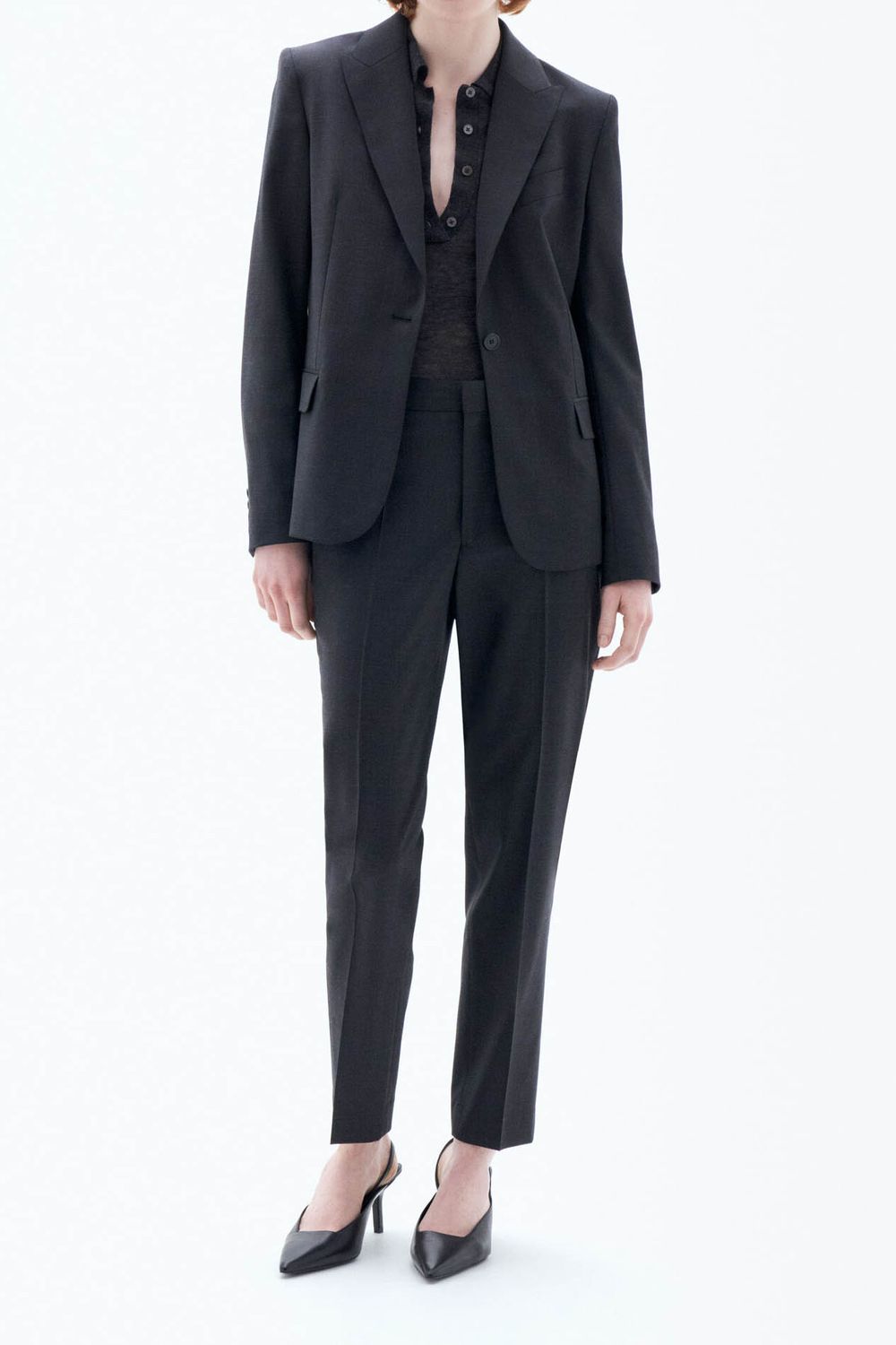 Schmal geschnittener Wollblazer mit einem Knopfverschluss. Tragen Sie ihn mit der Emma Cropped Cool Wool Trousers für einen kompletten Anzug-Look.