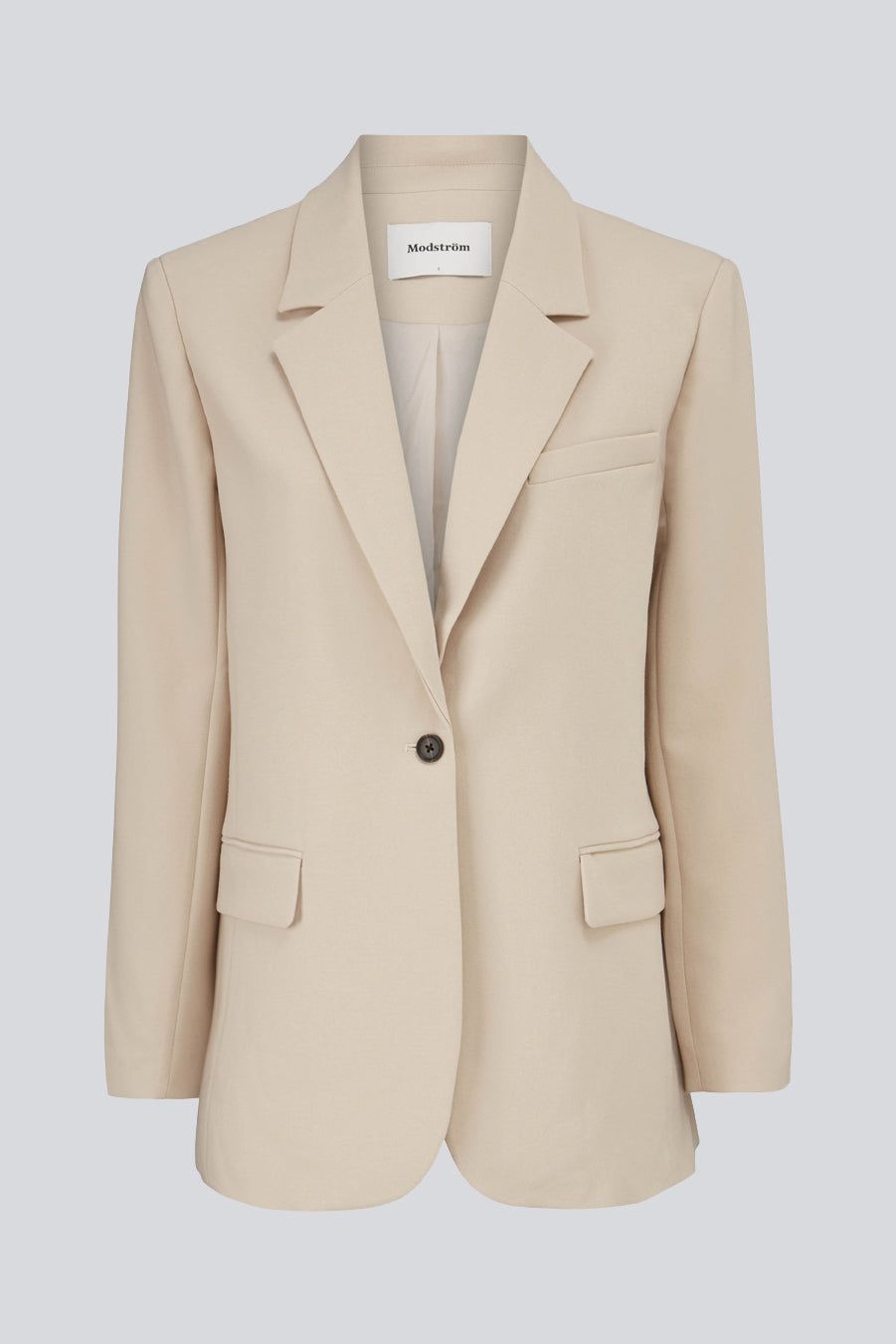 Gale Blazer in Powder Sand hat ein klassisches und elegantes Design, das durch den schönen Reverskragen und eine lange Passform erfüllt wird. Der Blazer hat einen Knopfverschluss auf der Vorderseite und eine Brusttasche auf der linken Seite.