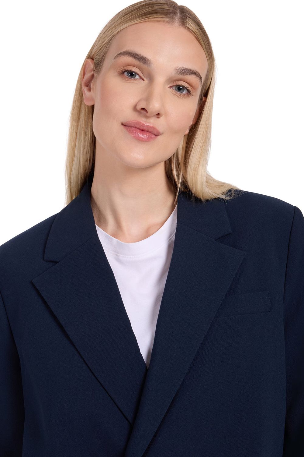 Tines ist ein moderner, klassischer Blazer im taillierten Look, der aus 79% recyceltem Polyester, 17% Viskose und 4% Elastan gefertigt ist. Der Blazer hat eine leicht übergroße Passform und verfügt über Schulterpolster und einen minimalistischen Reverskragen. Er ist mit einem doppelreihigen Knopf, Taschen und einem Schlitz auf der Rückseite ausgestattet. Das Model ist 180 cm groß und trägt Größe 36.
