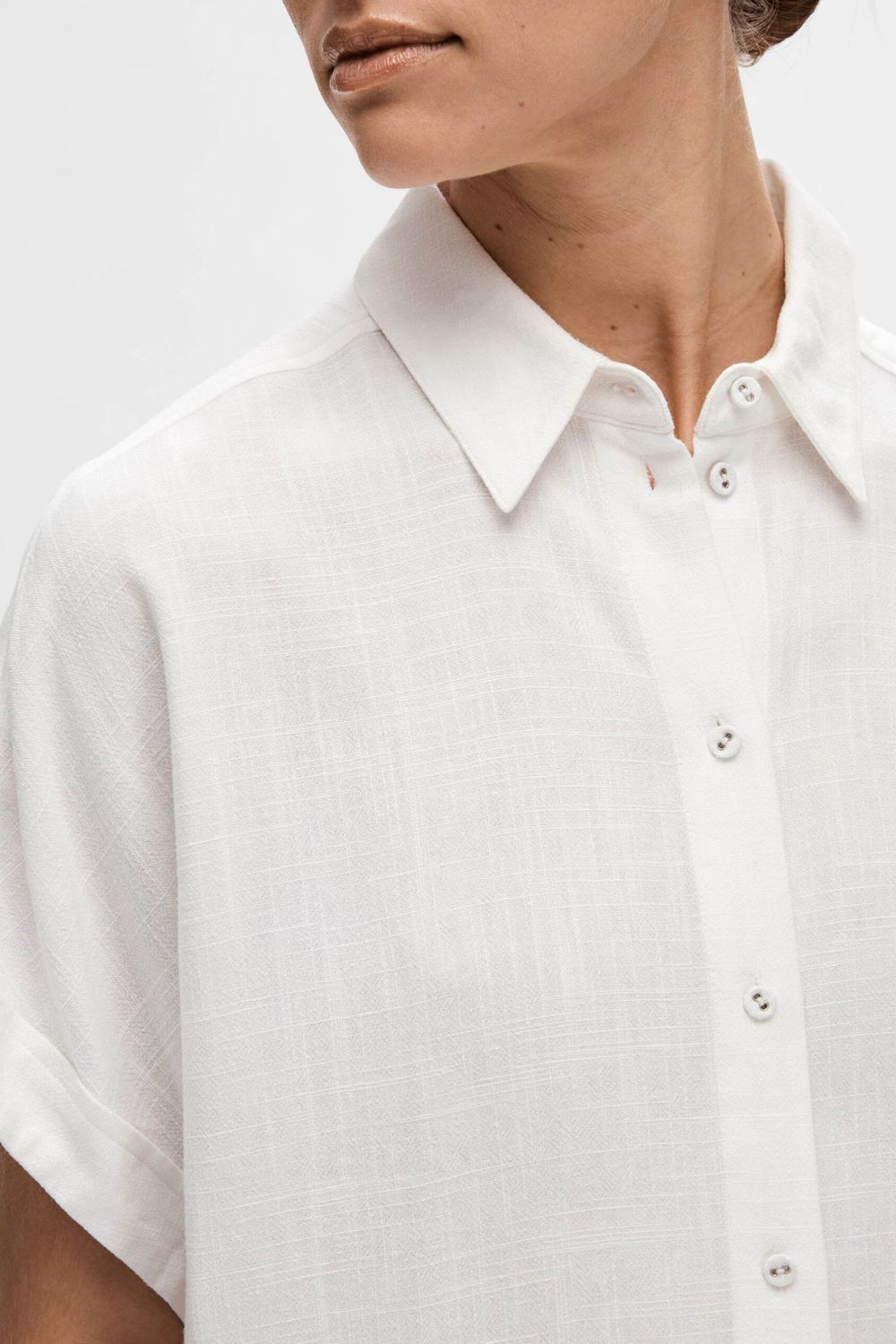 BLUSE 16093937 SLFVIVA SS CROPP SNOW WHIT