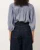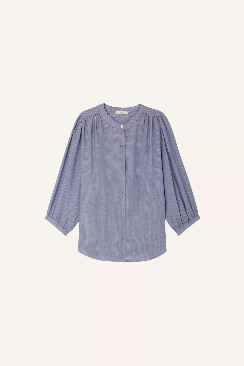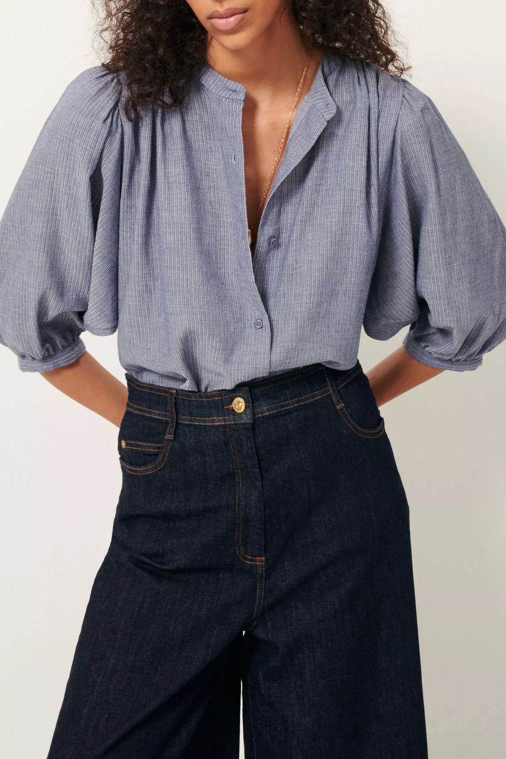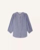 Bluse mit 3/4-Ballonärmeln aus Perkal mit Dobby-Streifen aus Chambray-Garnen, exklusives Sessùn-Design.