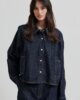 Second Female Denim Hemd. Das Hemd ist aus Baumwoll-Denim mit dunkelblauer Waschung und Kontrastnähten gefertigt. Es hat einen regulären Kragen und einen Druckknopfverschluss in Kontrastfarbe. Raglanärmel mit Druckknopfverschluss an den Manschetten. Zwei Seitentaschen. Weite, gerade Passform mit kastenförmiger Silhouette.