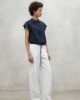 Das Hemd Faye aus 30 % recycelter Baumwolle hat einen Knopfverschluss auf der Vorderseite und einen verstellbaren Saum mit einem Kordelzug aus Stoff, was es zu einem ganz besonderen und originellen Kleidungsstück macht.