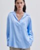 Second Female Seidenbluse mit offenem Halsausschnitt. Hergestellt aus superweicher und glatter Viskose mit glänzender Qualität. Mit offenem Halsausschnitt mit Knopfleiste und Kragen. Lange Ärmel mit überschnittenen Schultern und geknöpften Manschetten. Geformter Saum mit längerem Rücken. Lockere Passform mit entspannter, fließender Silhouette.