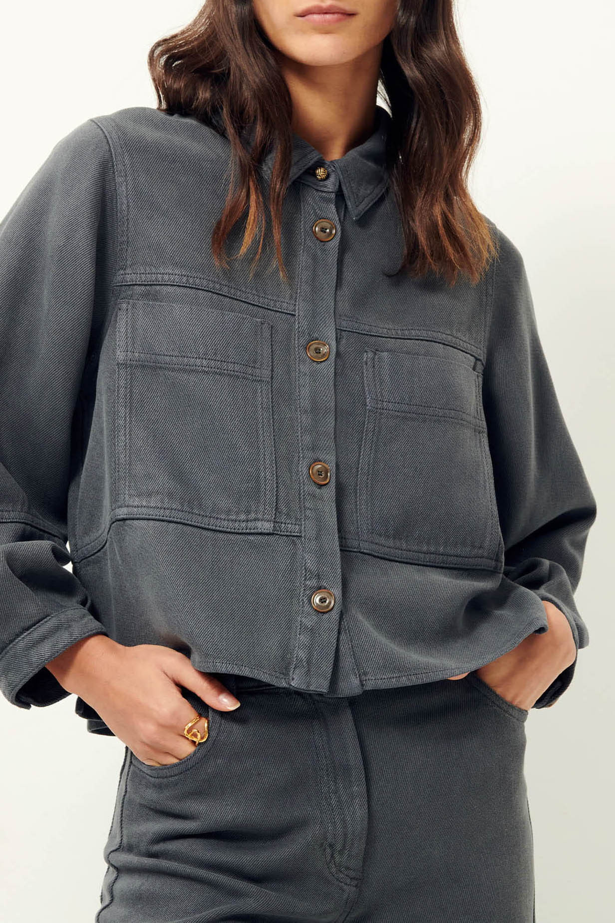 Overshirt mit Ballonärmeln aus fließendem, tauchgefärbtem Lyocellgabardine, spanische Webarbeit.