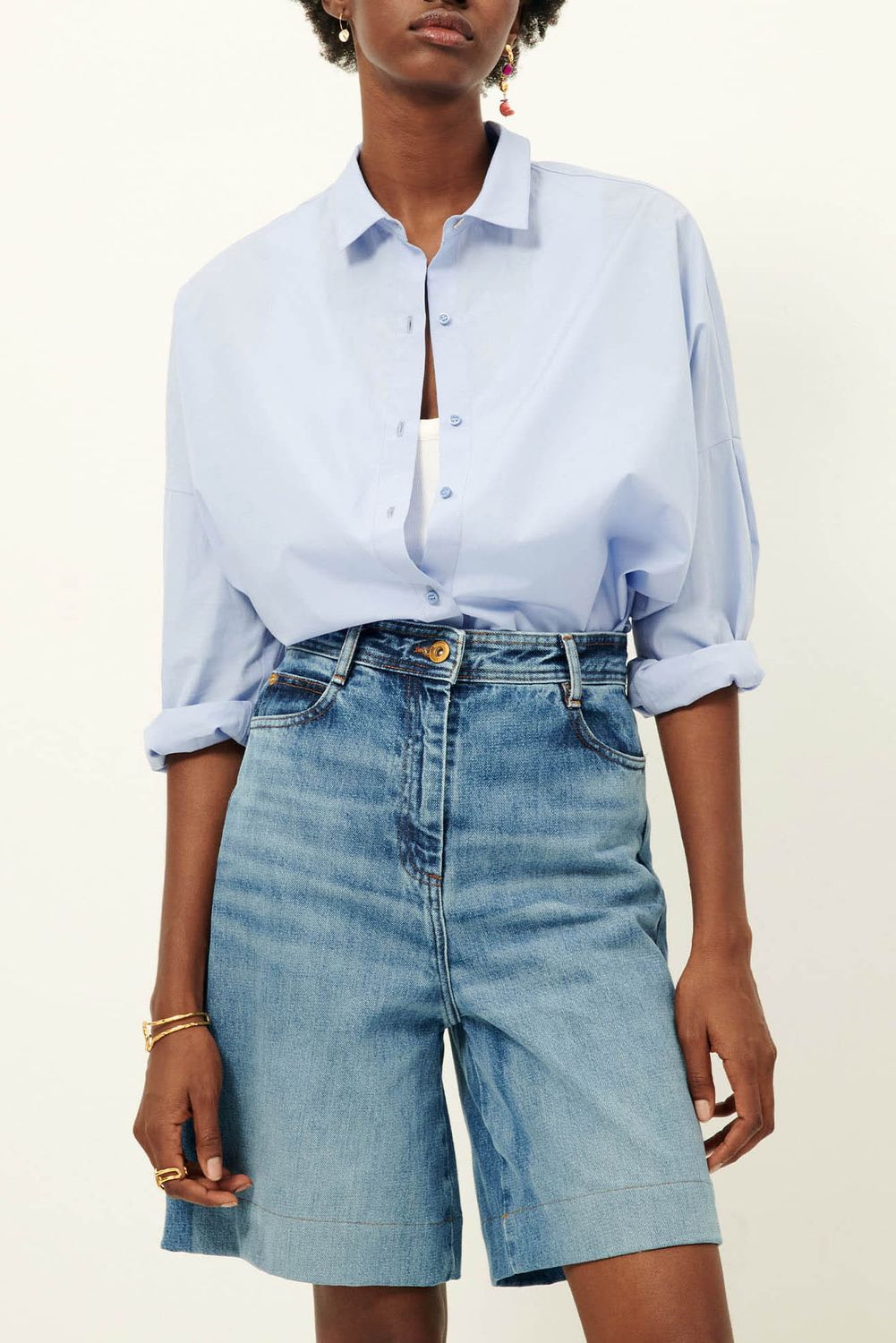 Weites Hemd mit tief angesetzten Armlöchern aus kompaktem, in Italien gewebtem Popelin aus Bio-Baumwolle.