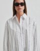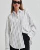 Second Female Nadelstreifenhemd. Das Hemd ist aus leichter und glatter Baumwolle mit einem Allover-Nadelstreifenmuster gefertigt. Es hat einen regulären Kragen und einen durchgehenden Knopfverschluss. Überschnittene Schultern und lange Ärmel mit verstellbaren, geknöpften Manschetten. Geformter Saum. Lockere Passform.