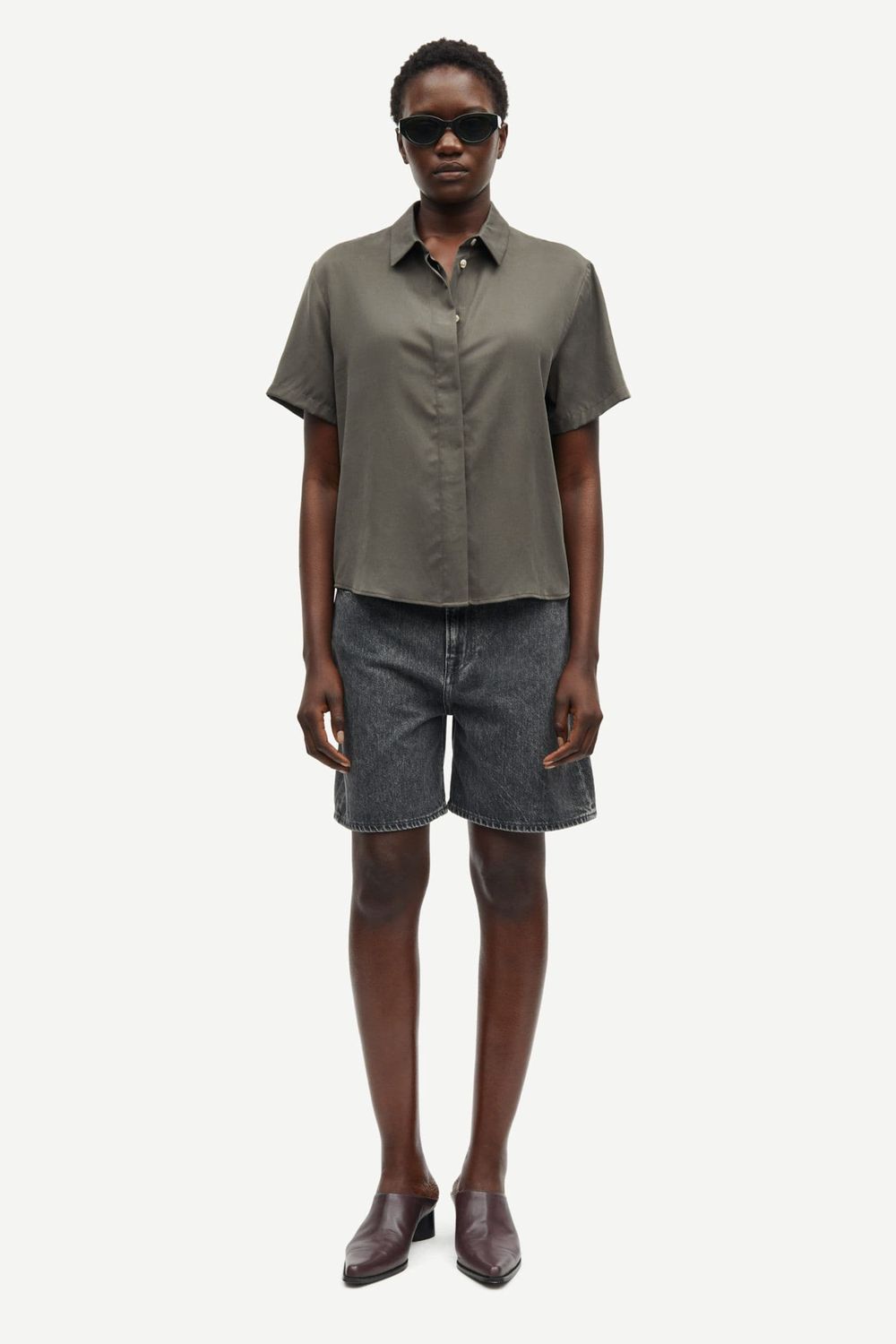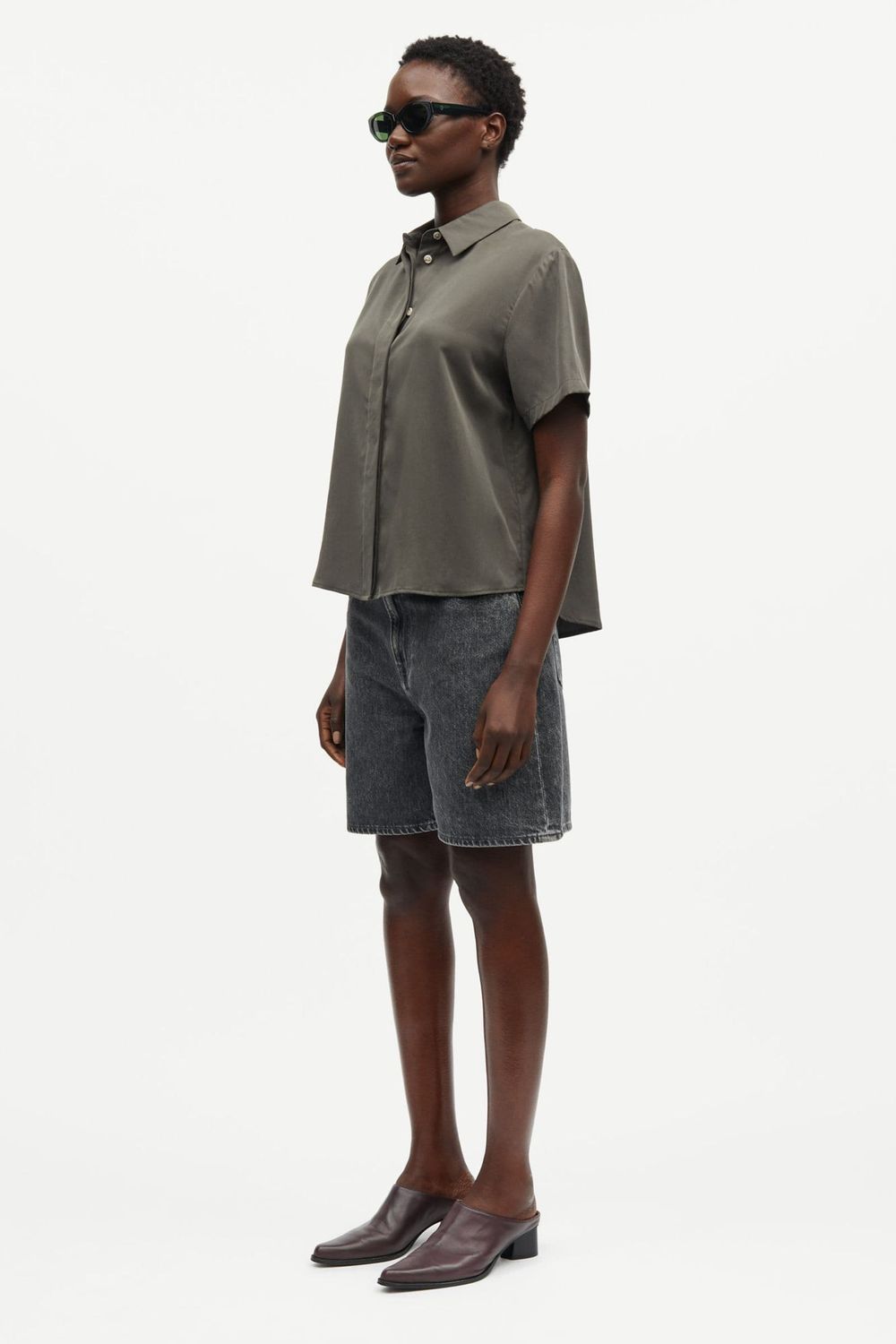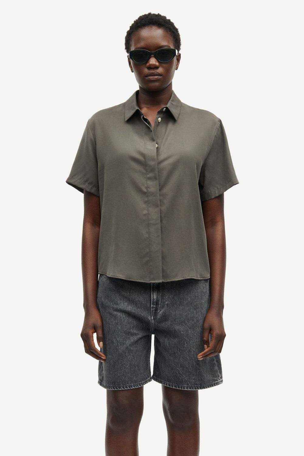 Kurzärmeliges Hemd mit legerer Passform und überschnittenen Schultern. Verdeckte Knopfleiste. Naht mit Falte an der Passe. Hauptmaterial gefertigt aus 100 % TENCEL™ Lyocell. Dieses Produkt enthält TENCEL™ Lyocell, ein Low Impact-Material, das aus verantwortungsvoll verwalteten Holzquellen bezogen wird.