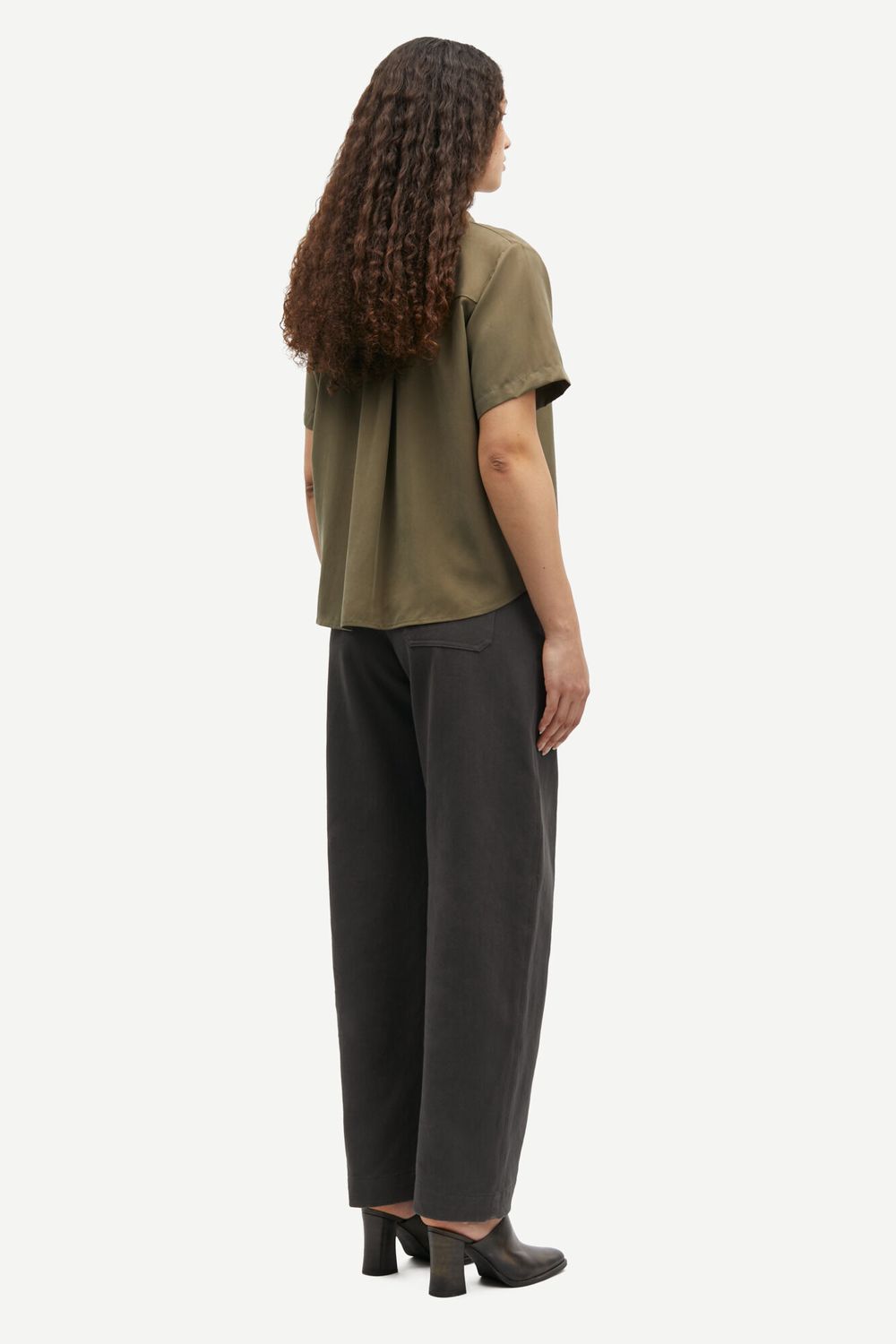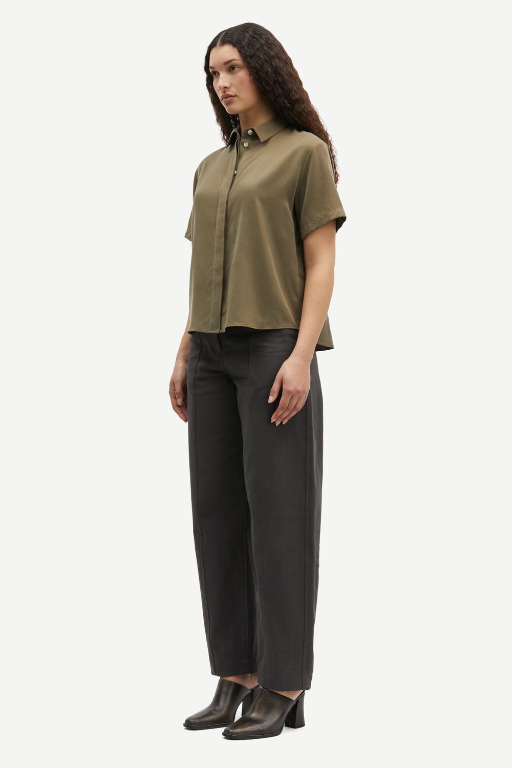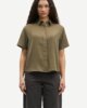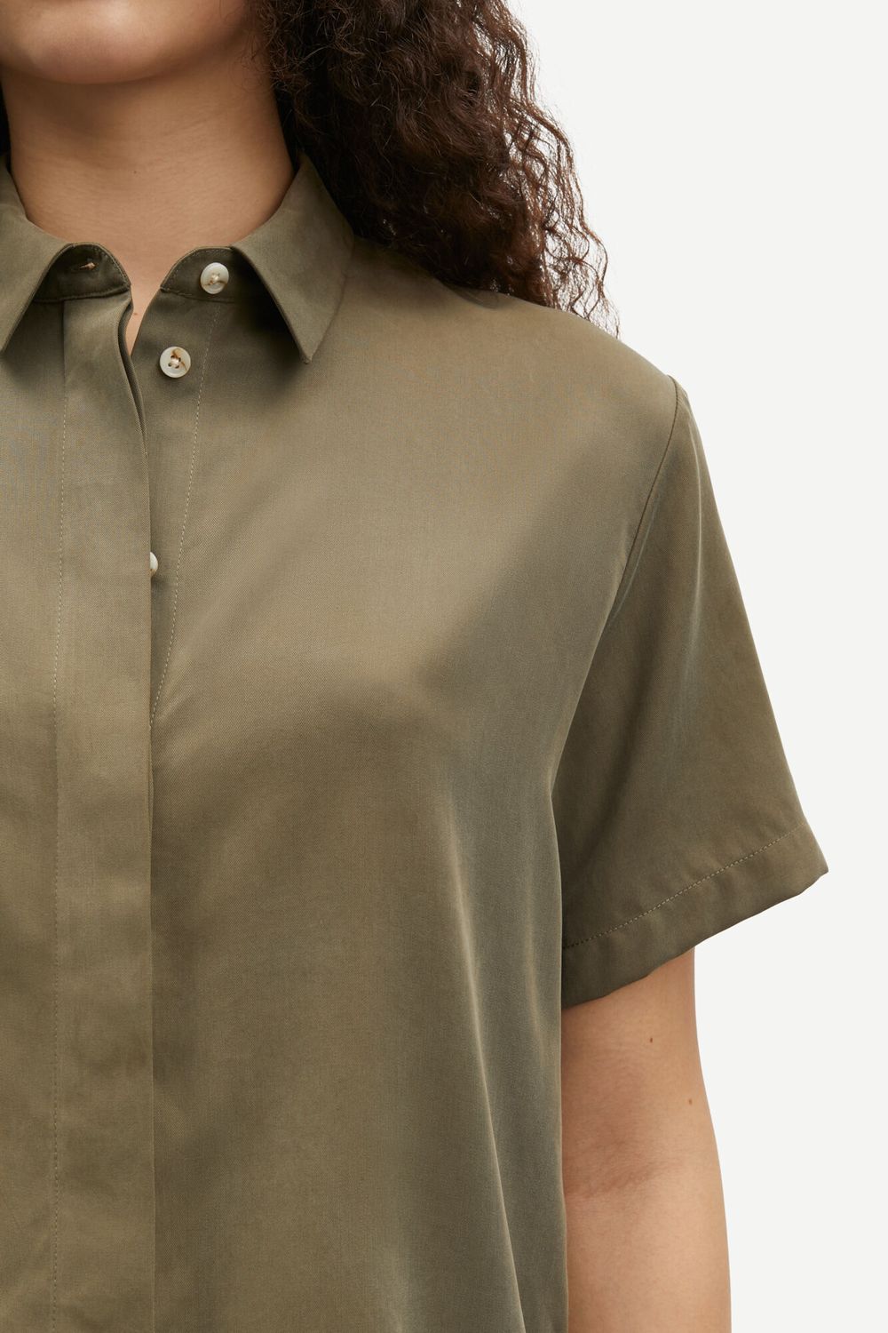 Kurzärmeliges Hemd mit lockerer Passform und überschnittenen Schultern. Unsichtbarer Knopfverschluss auf der Vorderseite. Nackenpasse mit Plissee-Details.