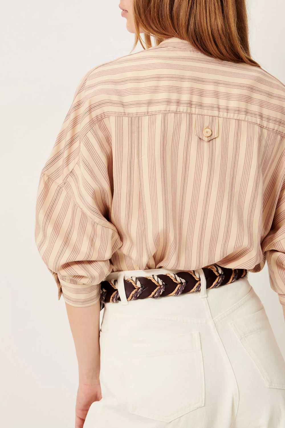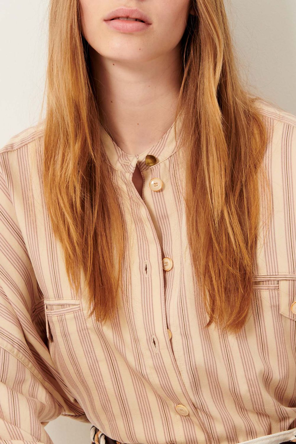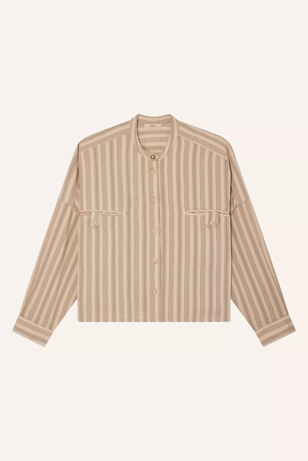 Kurzes Hemd mit Paspeltaschen aus Lyocell-Perkal mit kontrastierenden Streifen und Webstruktur. Italienische Webarbeit.