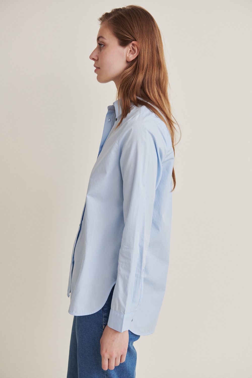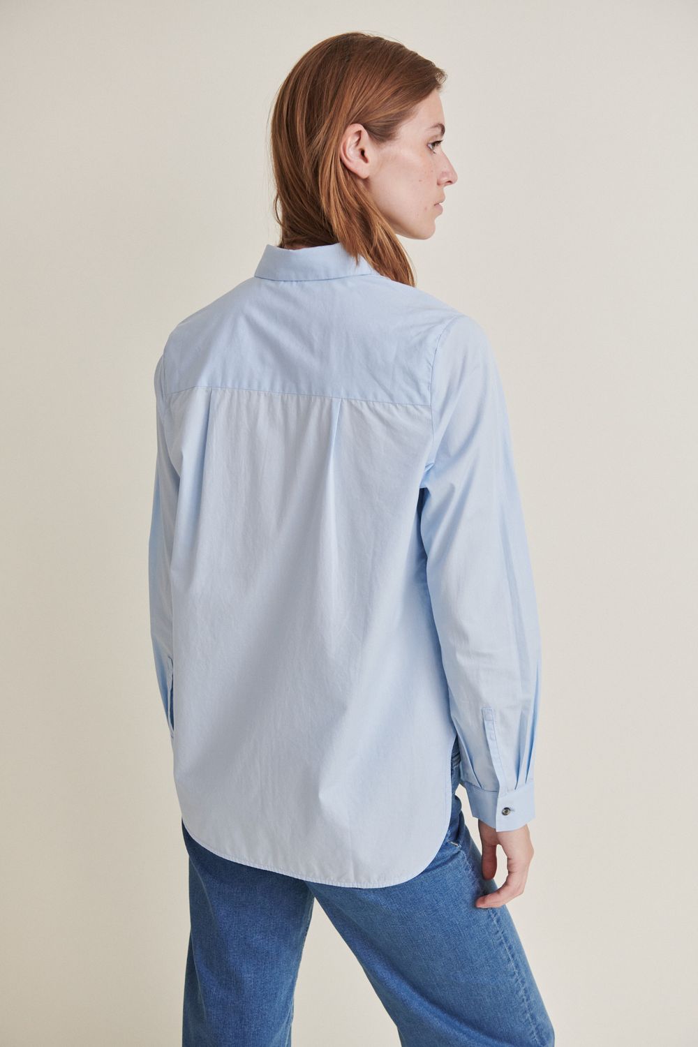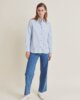 Die Bluse hat eine reguläre Passform, lange Ärmel und einen Kragen.