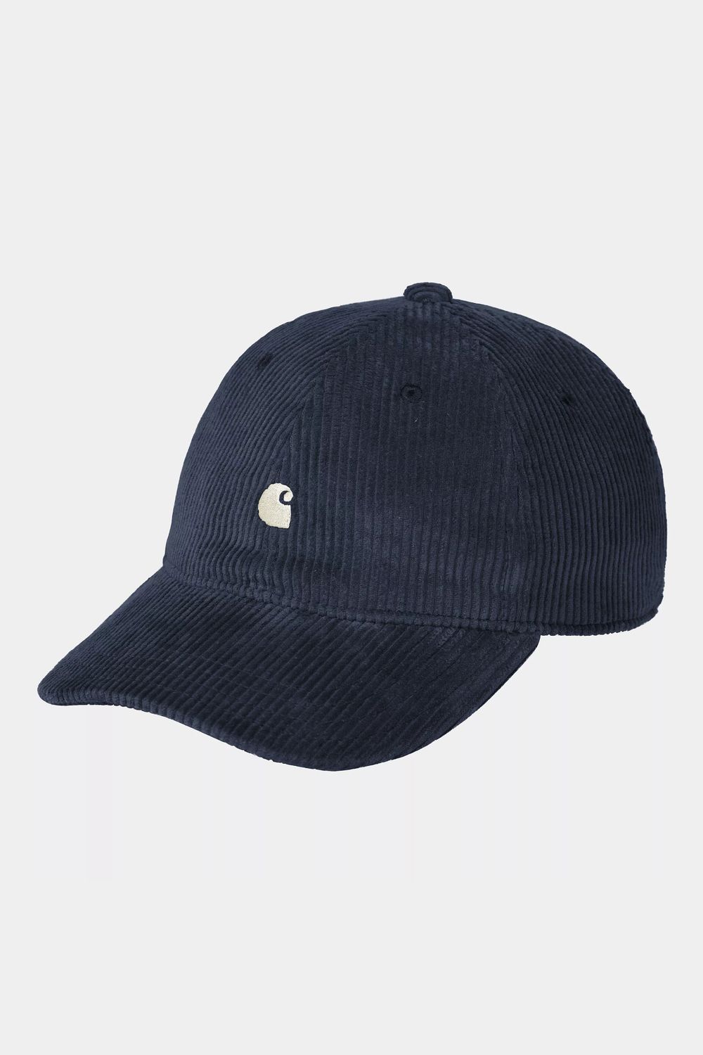 Die Harlem Cap hat ein ungefüttertes Six-Panel-Design mit einem festen, abgerundeten Schirm. Sie besteht aus einem Baumwollkord mit 8 Rippen pro Zoll, was heißt, dass das Material eine höhere Breite der Grate aufweist. Für eine verstellbare Passform ist die Cap mit einem anpassbaren Riemen versehen, während ein gesticktes Carhartt WIP 'C' Logo auf der Vorderseite das Design abrundet.