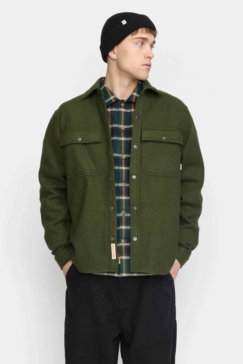 Das Hemd verfügt über zwei charakteristische aufgenähte Brusttaschen mit geknöpften Klappen, eine Frontleiste mit unseren Revolution dark metal X-snap-Knöpfen und verstellbare Ärmelabschlüsse. Das Hemd ist mit Doppelnähten versehen, die für einen ausgeprägten Casual-Look sorgen, und der Saum ist geschwungen, um das Überziehen zu erleichtern.