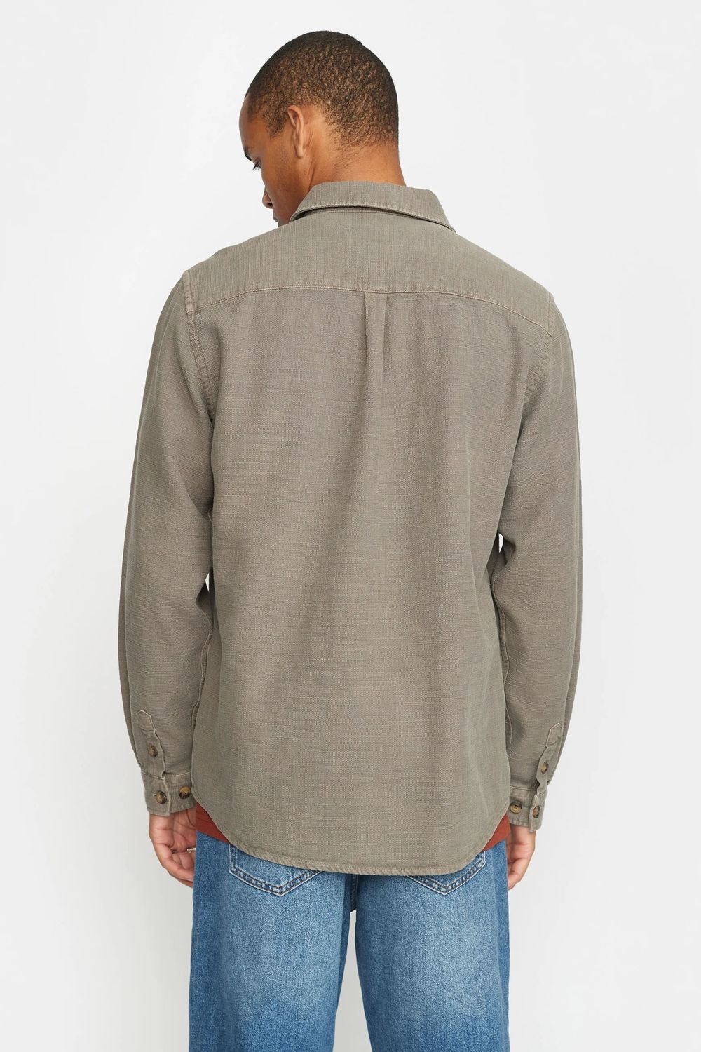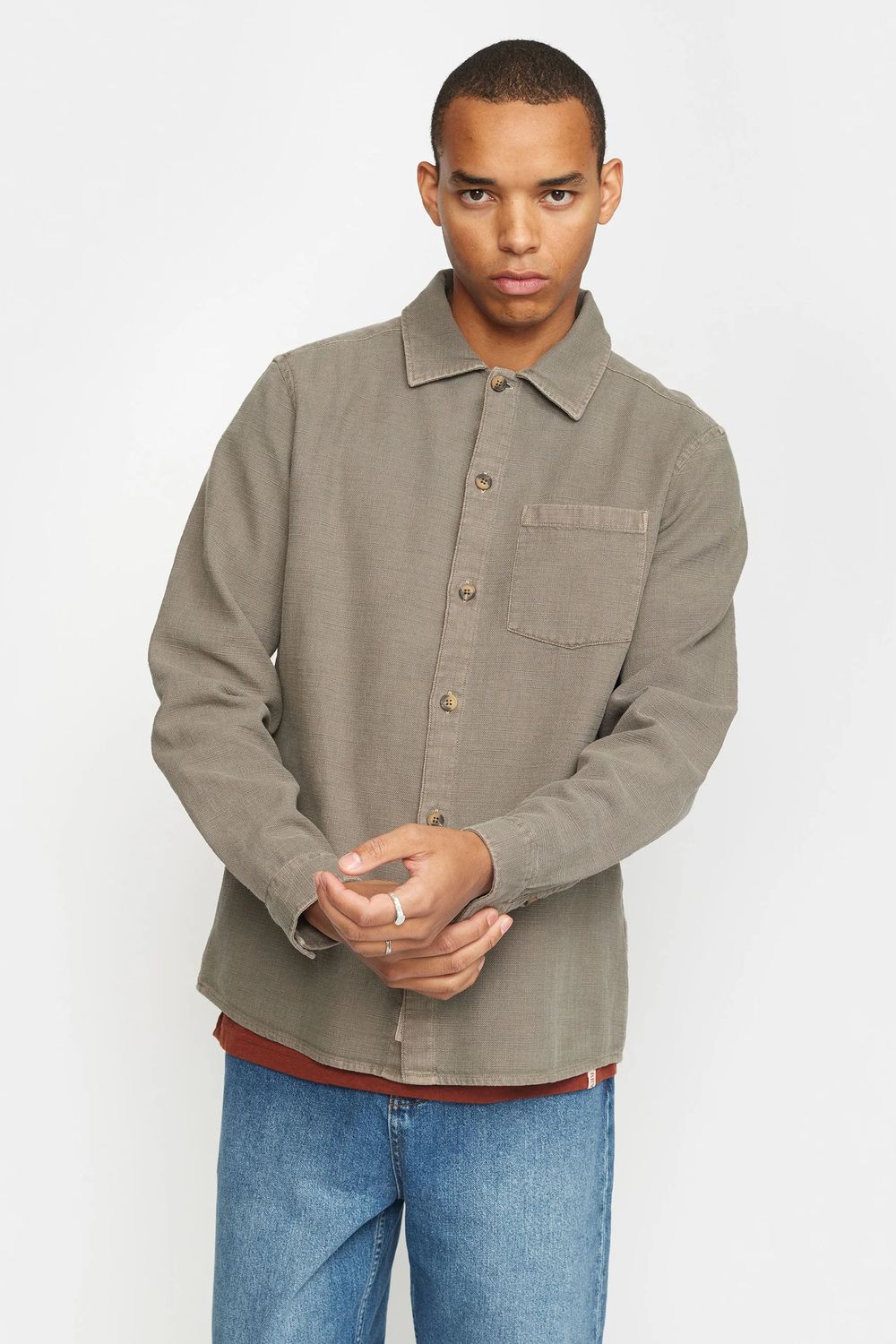Ein lockeres Hemd aus mittelschwerer Bio-Baumwolle mit einer charakteristischen groben Struktur. Dieses stabile Überhemd von Revolution verfügt über eine quadratische aufgesetzte Brusttasche, eine Knopfleiste mit Knöpfen in Hornoptik und ein verstellbares Bündchen. Der Saum ist gebogen, um das Überziehen zu erleichtern, und der Rücken ist mit einer traditionellen doppellagigen Passe mit Kellerfalte für zusätzlichen Komfort ausgestattet.