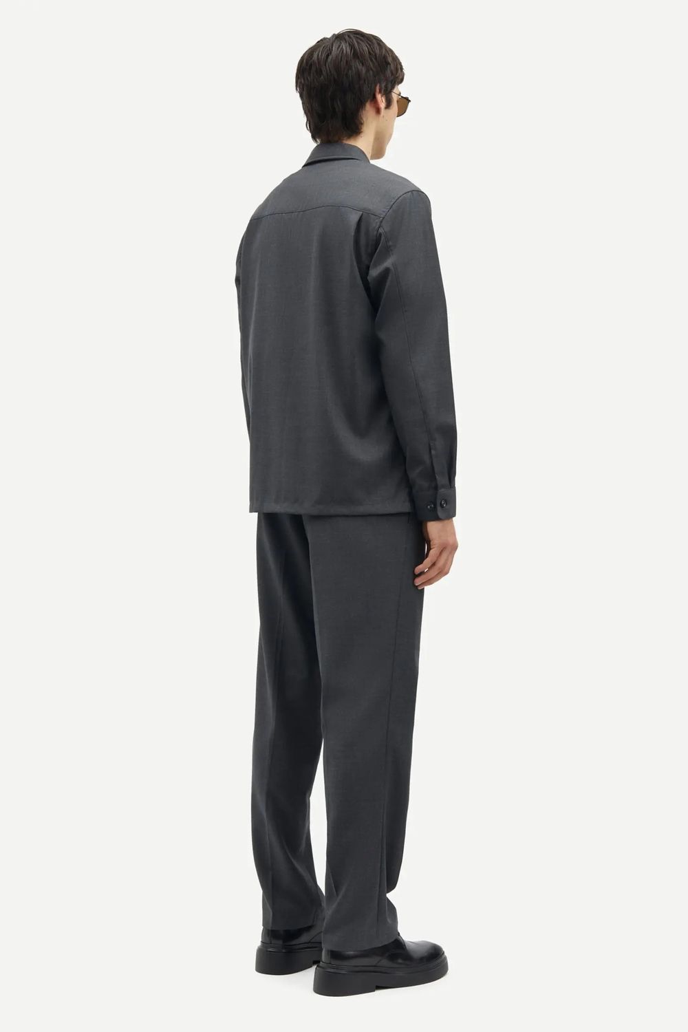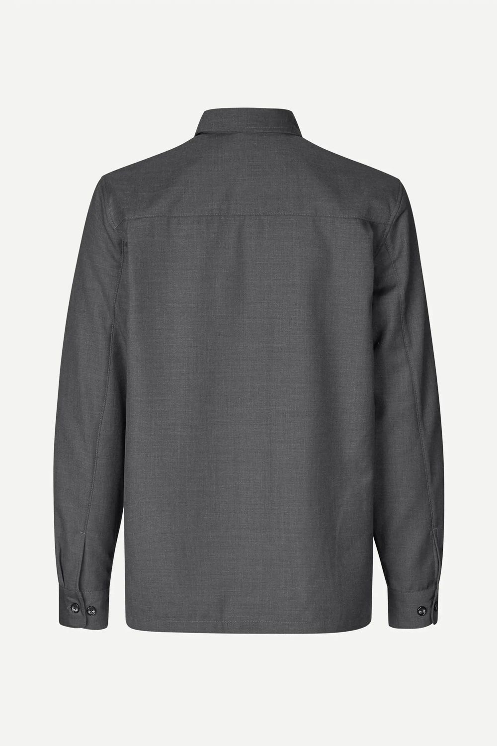 Langärmeliges Überziehhemd mit legerer Passform. Knopfverschluss auf der Vorderseite und geknöpfte Manschetten. Aufgesetzte Tasche auf der Brust. Naht an der rückwärtigen Passe. Hauptmaterial aus einem Mischgewebe aus recyceltem Polyester und Wolle.