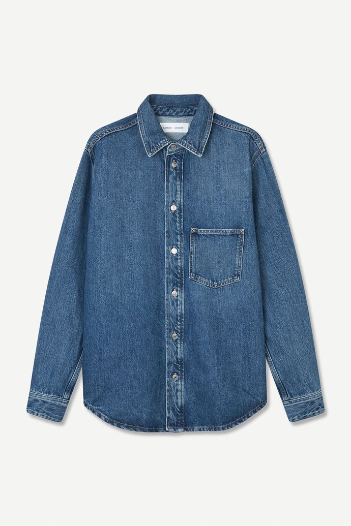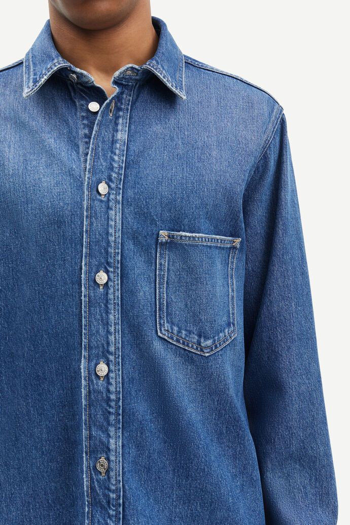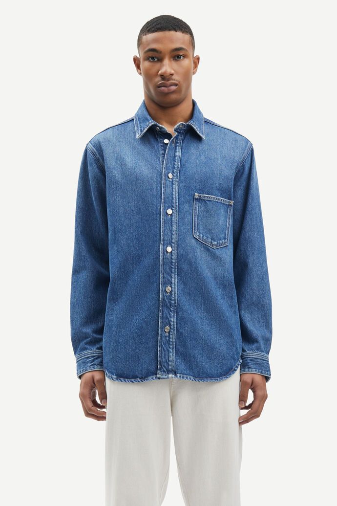 Langärmeliges Jeanshemd mit normaler Passform. Knopfverschluss auf der Vorderseite und geknöpfte Manschetten. Aufgesetzte Tasche. Naht an der rückwärtigen Passe. Hauptmaterial aus 100 % Biobaumwolle. Dieses Produkt enthält Biobaumwolle, die ohne den Einsatz von GVO oder gefährlichen Chemikalien angebaut wird.