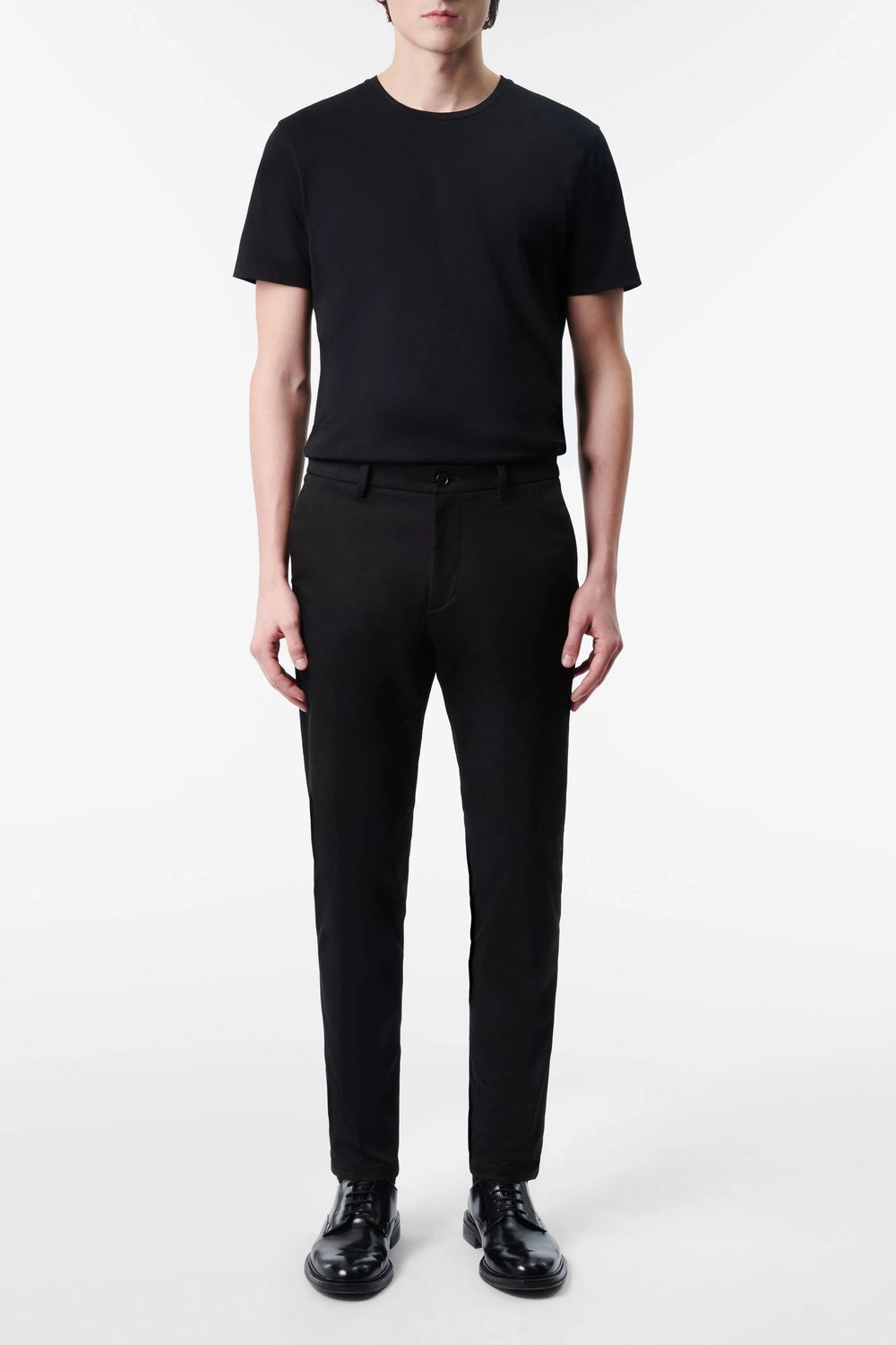 AJEND ist eine klassische Hose mit Bügelfalte und schmal zulaufendem Bein. Durch einen elastischen Einsatz seitlich am Bund bekommt sie einen sportiven Touch und bietet dadurch einen hohen Grad an Bequemlichkeit. Sie kann kombiniert werden mit einem Sakko und klassischen Schuhen für einen formellen Look.Der Baumwoll-Gabardine mit leichtem Stretch-Anteil verleiht ein angenehmes Tragegefühl.