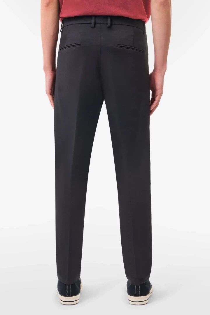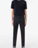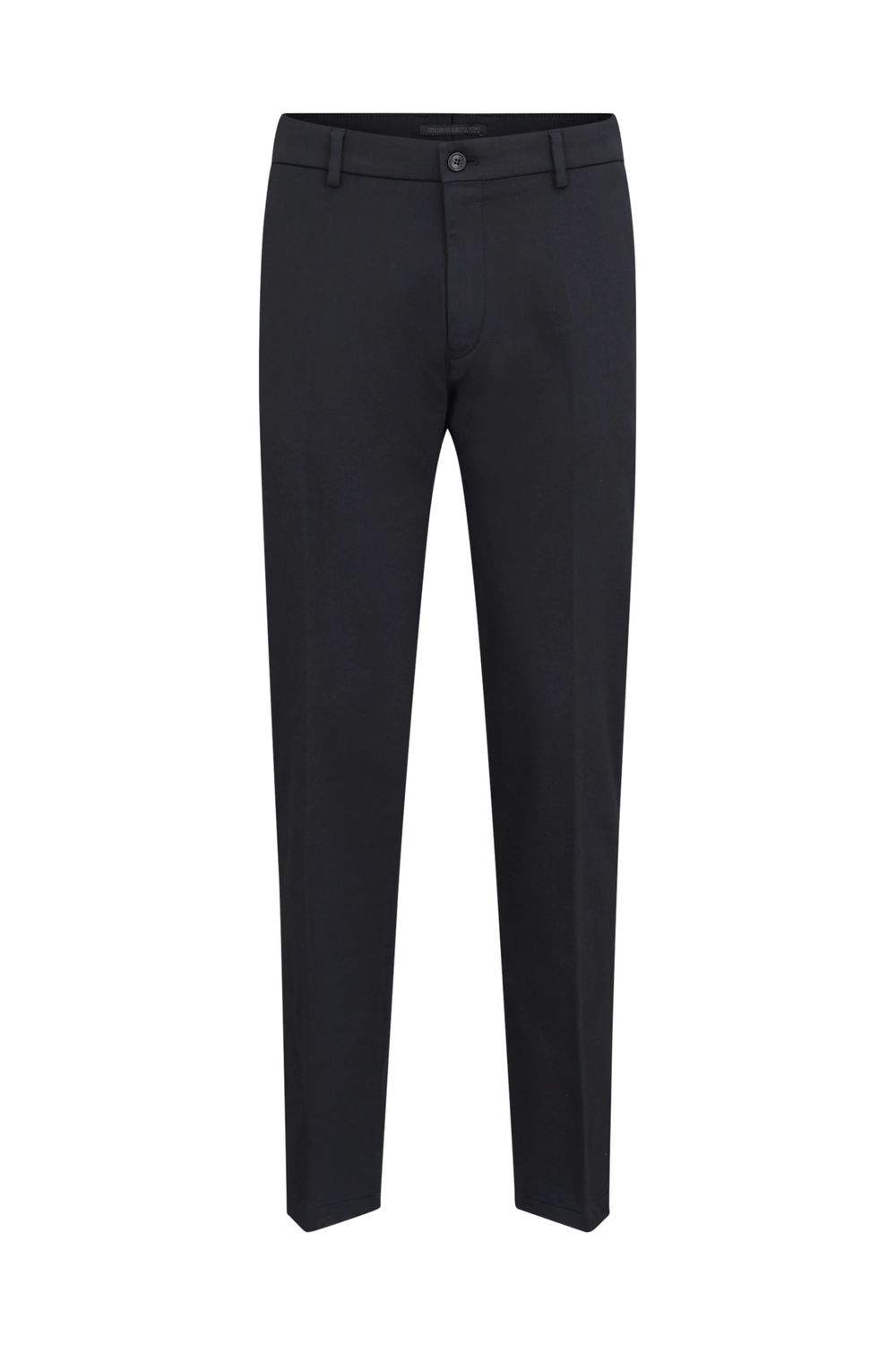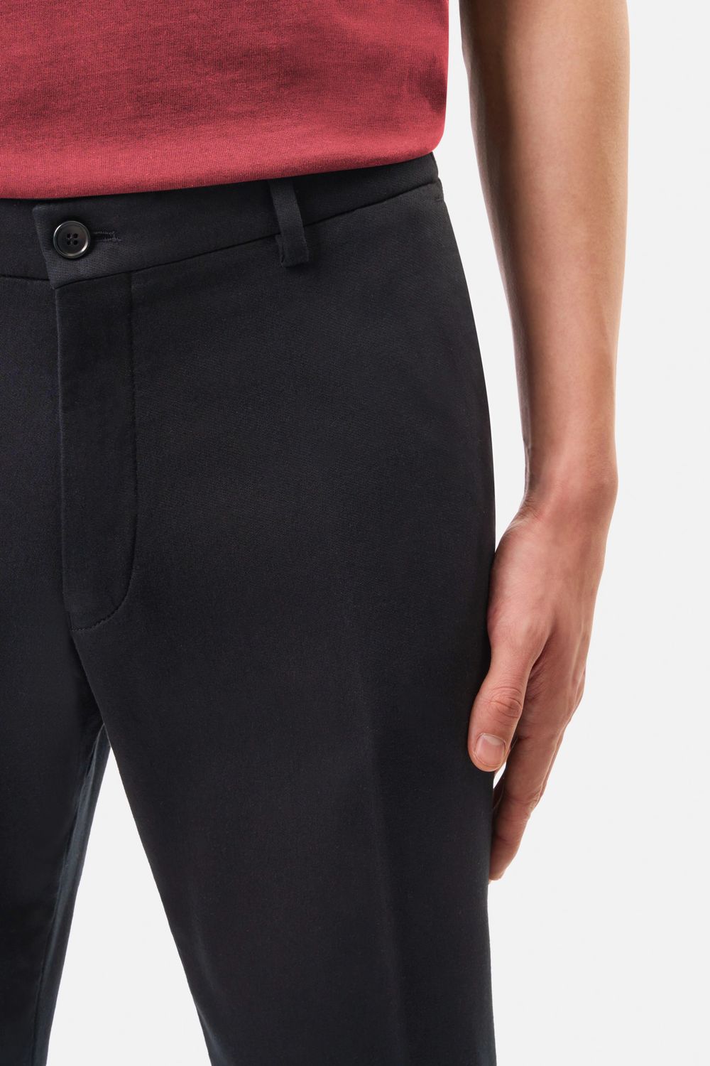 AJEND ist eine klassische Hose mit Bügelfalte und schmal zulaufendem Bein. Durch einen elastischen Einsatz seitlich am Bund bekommt sie einen sportiven Touch und bietet dadurch einen hohen Grad an Bequemlichkeit. Sie kann kombiniert werden mit einem Sakko und klassischen Schuhen für einen formellen Look. Der sportive und gewaschene Baumwolle-Viscose Jersey bietet einen angenehmen Tragekomfort.