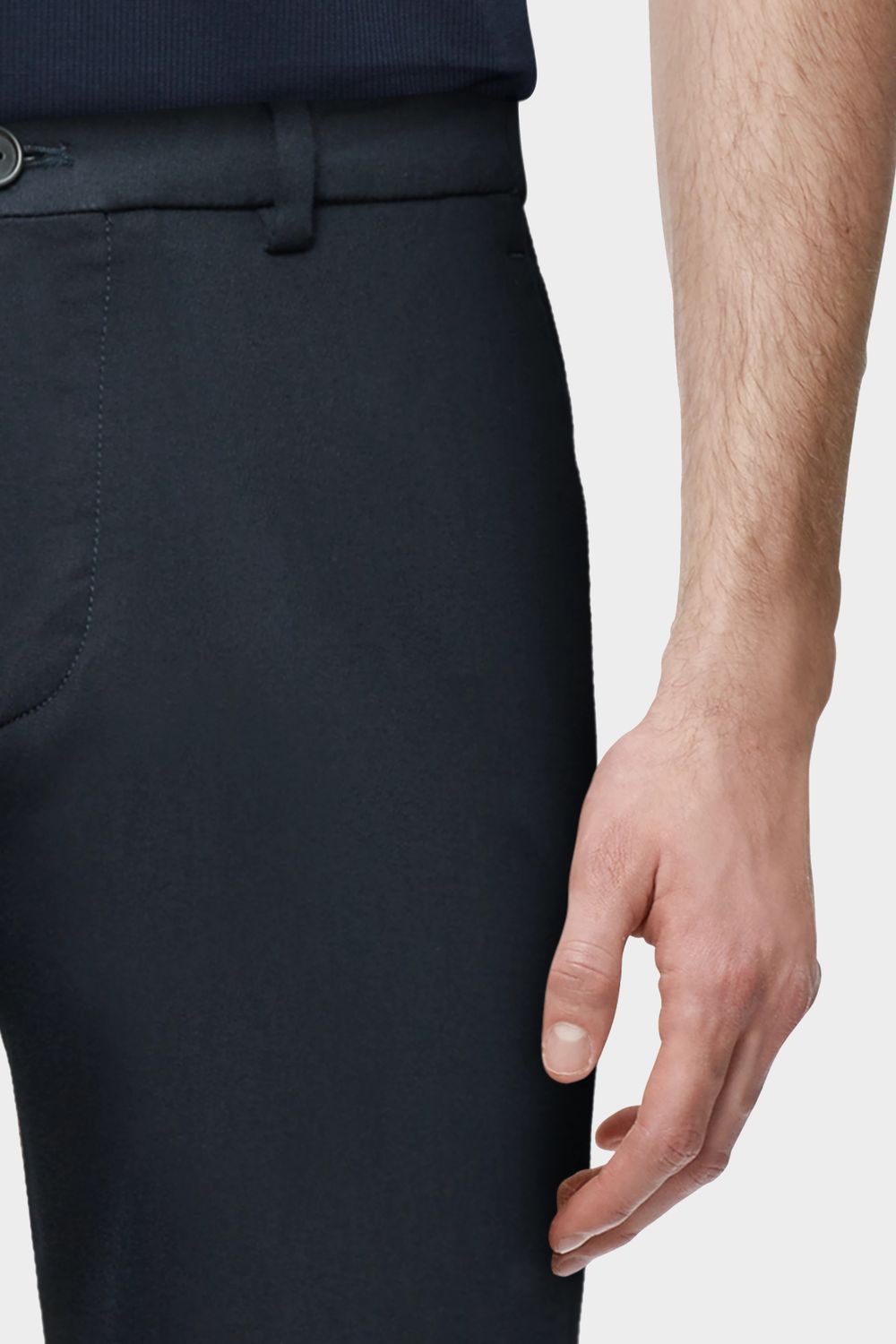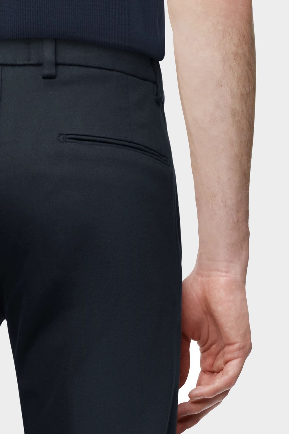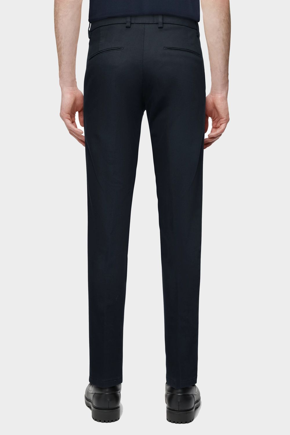 AJEND ist eine klassische Hose mit Bügelfalte und schmal zulaufendem Bein. Durch einen elastischen Einsatz seitlich am Bund bekommt sie einen sportiven Touch und bietet dadurch einen hohen Grad an Bequemlichkeit. Sie kann kombiniert werden mit einem Sakko und klassischen Schuhen für einen formellen Look. Der sportive und gewaschene Baumwolle-Viscose Jersey bietet einen angenehmen Tragekomfort.