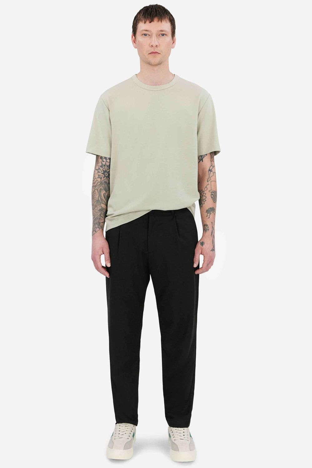 Arnason ist eine frische Hose aus einem sauberen und luxuriösen Dobby Structure-Gewebe aus Polyester und Viskose. Sie zeichnet sich durch einen entspannten Oberschenkel, ein spitz zulaufendes Bein und eine plissierte Vorderseite aus.