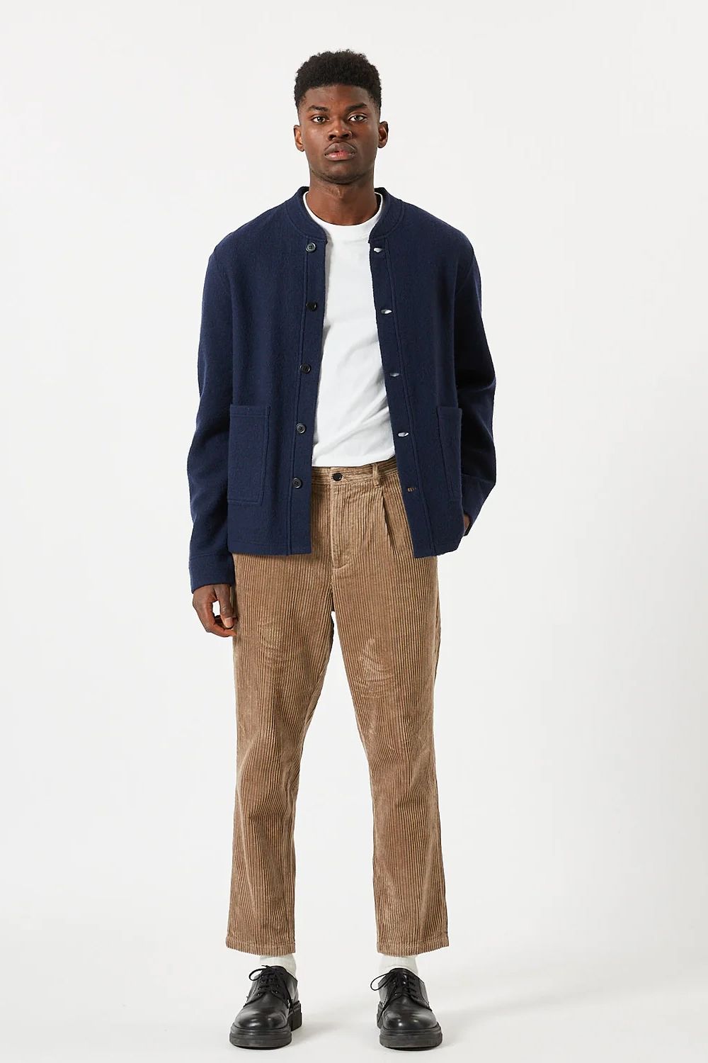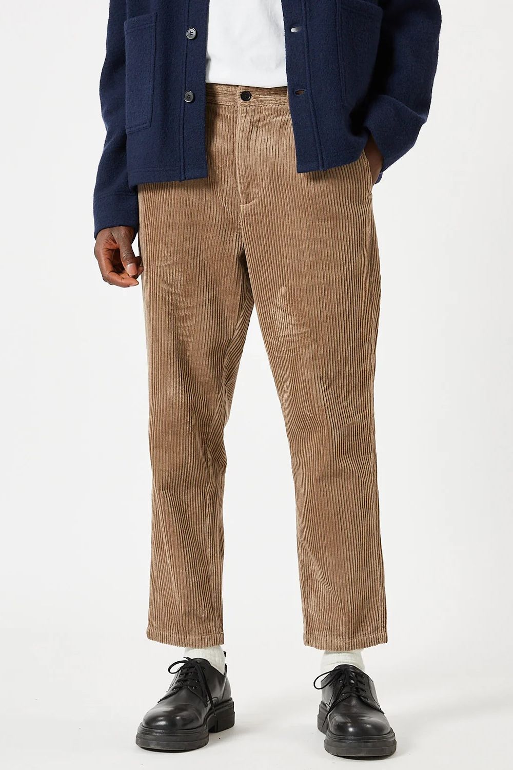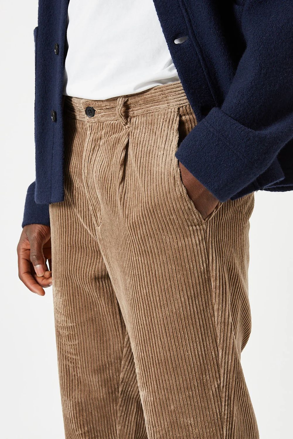 Bratis ist eine Cordhose aus 100 % Baumwolle für eine komfortable Qualität. Die Hose hat eine entspannte Passform mit leicht verkürzten Beinen. Sie verfügt über zwei Seitentaschen, Paspeltaschen auf der Rückseite und Bundfalten. Das Model ist 190 cm groß und trägt Größe 32.