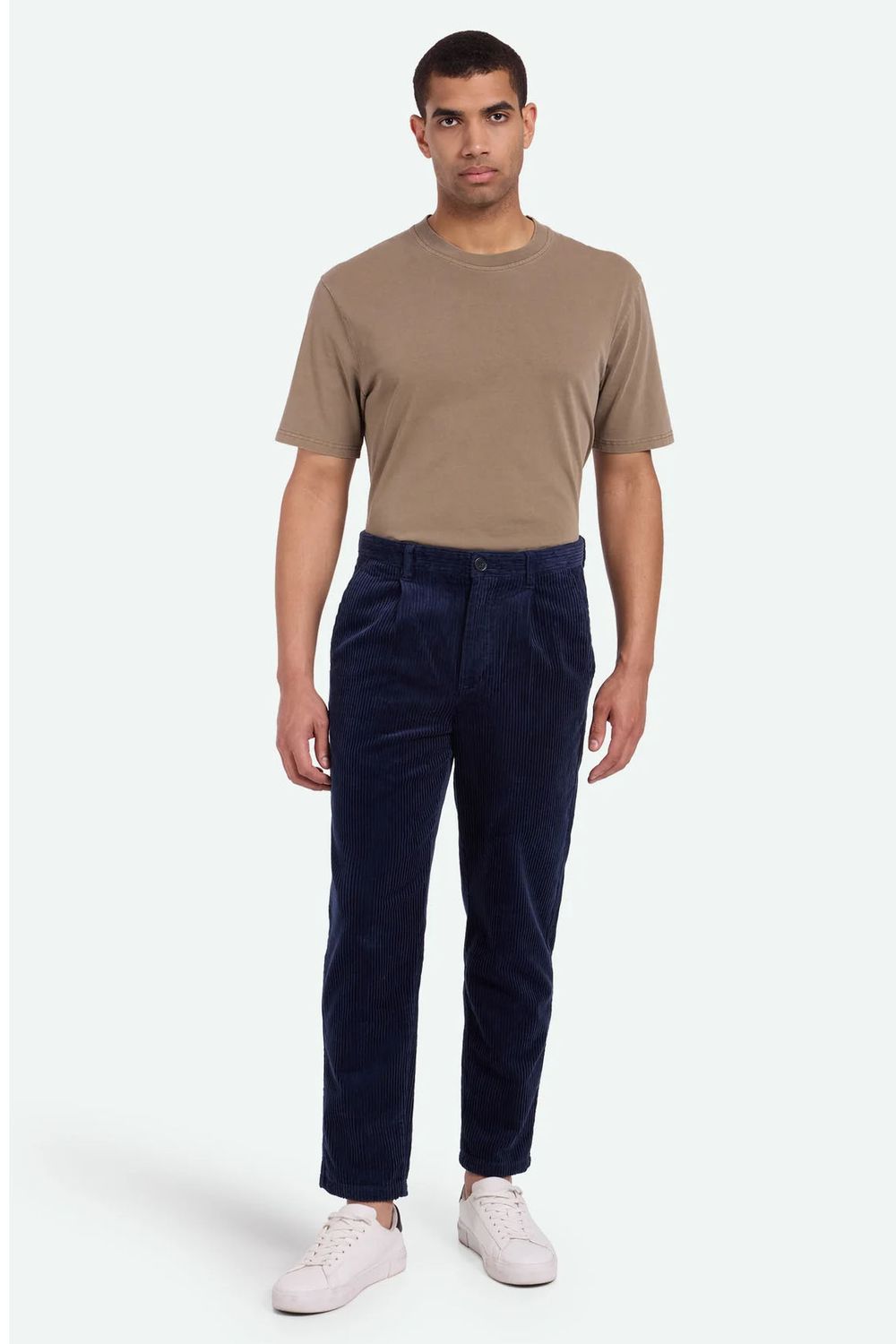 Bratis ist eine Cordhose aus 100 % Baumwolle für eine komfortable Qualität. Die Hose hat eine entspannte Passform mit leicht verkürzten Beinen. Sie verfügt über zwei Seitentaschen, Paspeltaschen auf der Rückseite und Bundfalten. Das Model ist 190 cm groß und trägt Größe 32.