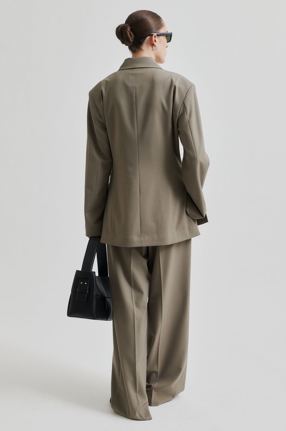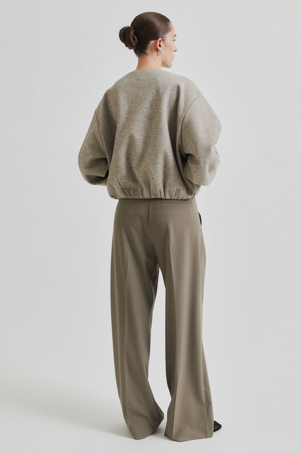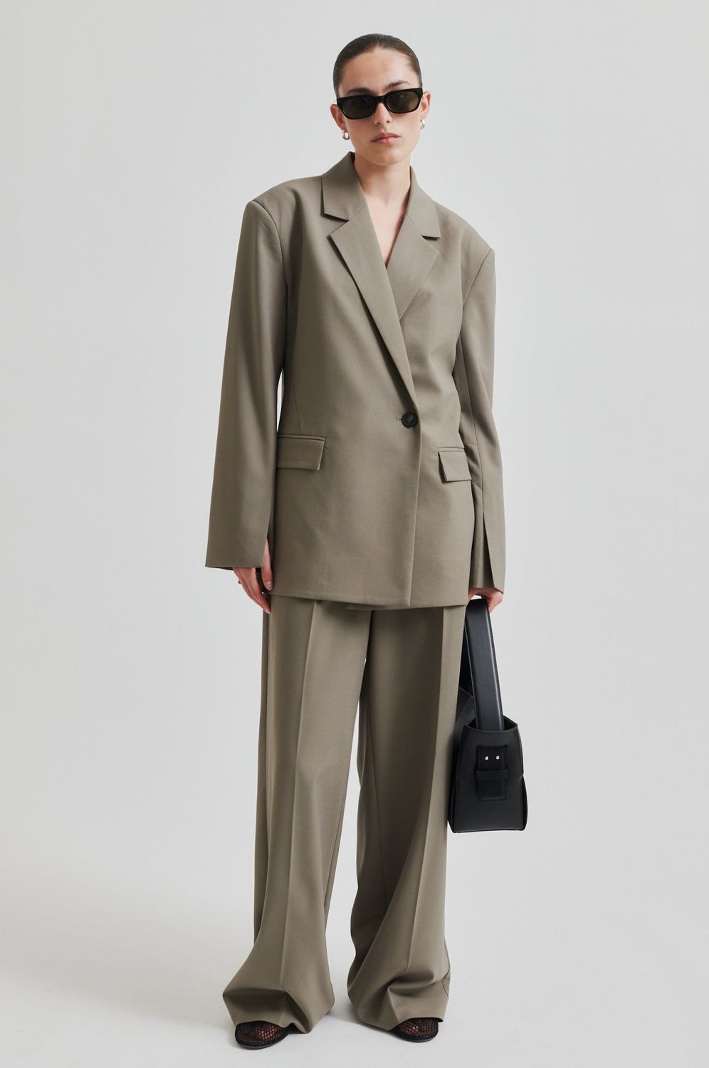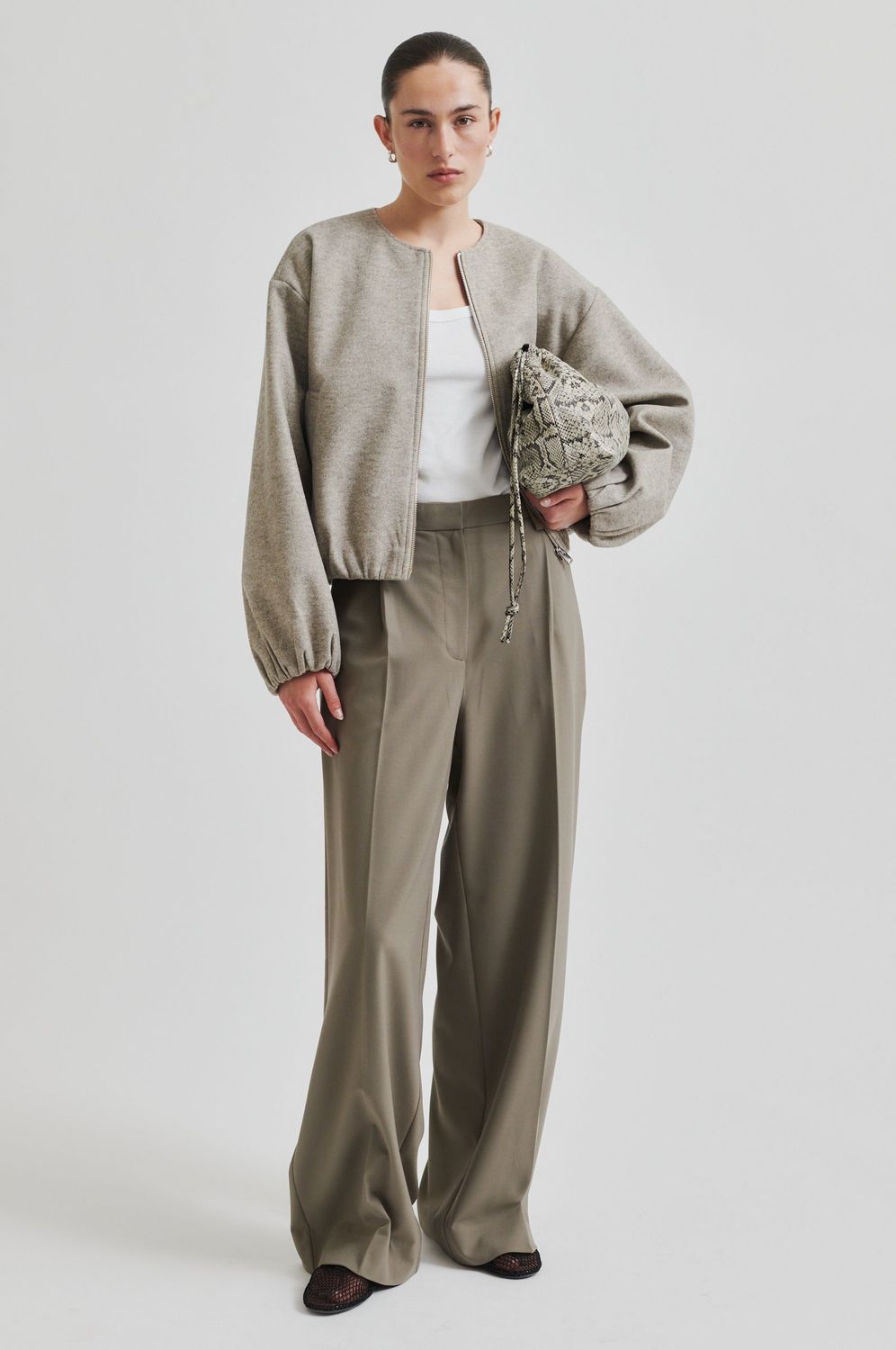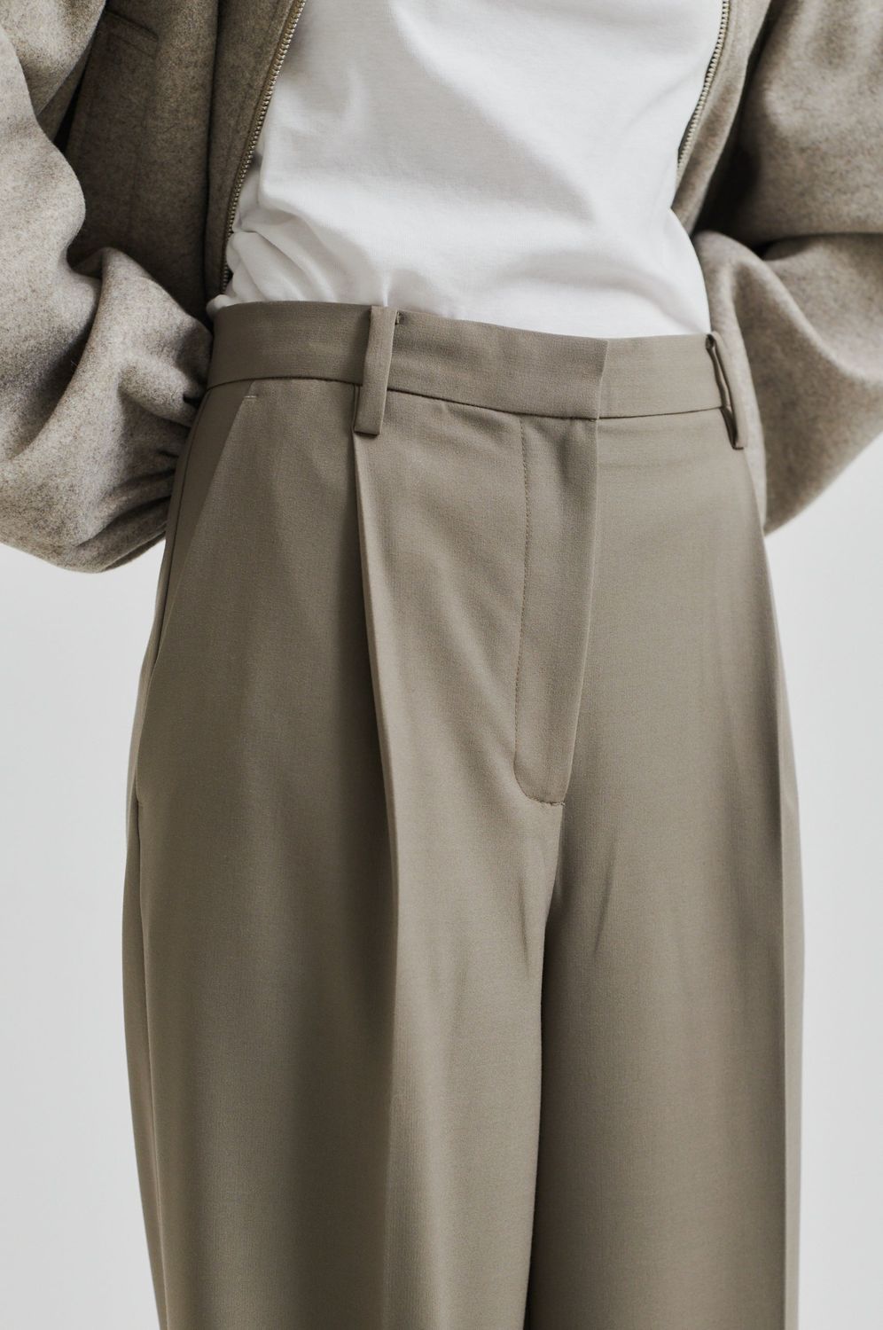 Second Female Bundfaltenhose. Die Hose ist aus einer leichten, glatten Wollmischung gefertigt. Mit verdecktem Reißverschluss, Haken und Knopfverschluss auf der Vorderseite. Zwei schräge Taschen auf der Vorderseite und zwei Leistentaschen auf der Rückseite. Mittlere Taille mit geradem, lockerem Bein.