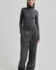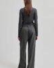 Second Female gestreifte Anzughose. Hergestellt aus einer weichen und glatten Stoffmischung mit Streifenmuster. Ausgestattet mit einem verdeckten Reißverschluss, Haken und Knöpfen an der Vorderseite. Zwei schräge Taschen auf der Vorderseite und zwei Leistentaschen auf der Rückseite. Mittlere Taille mit extraweitem, geradem Bein.