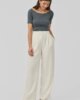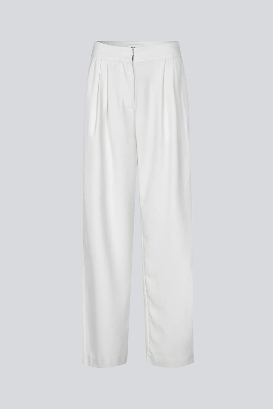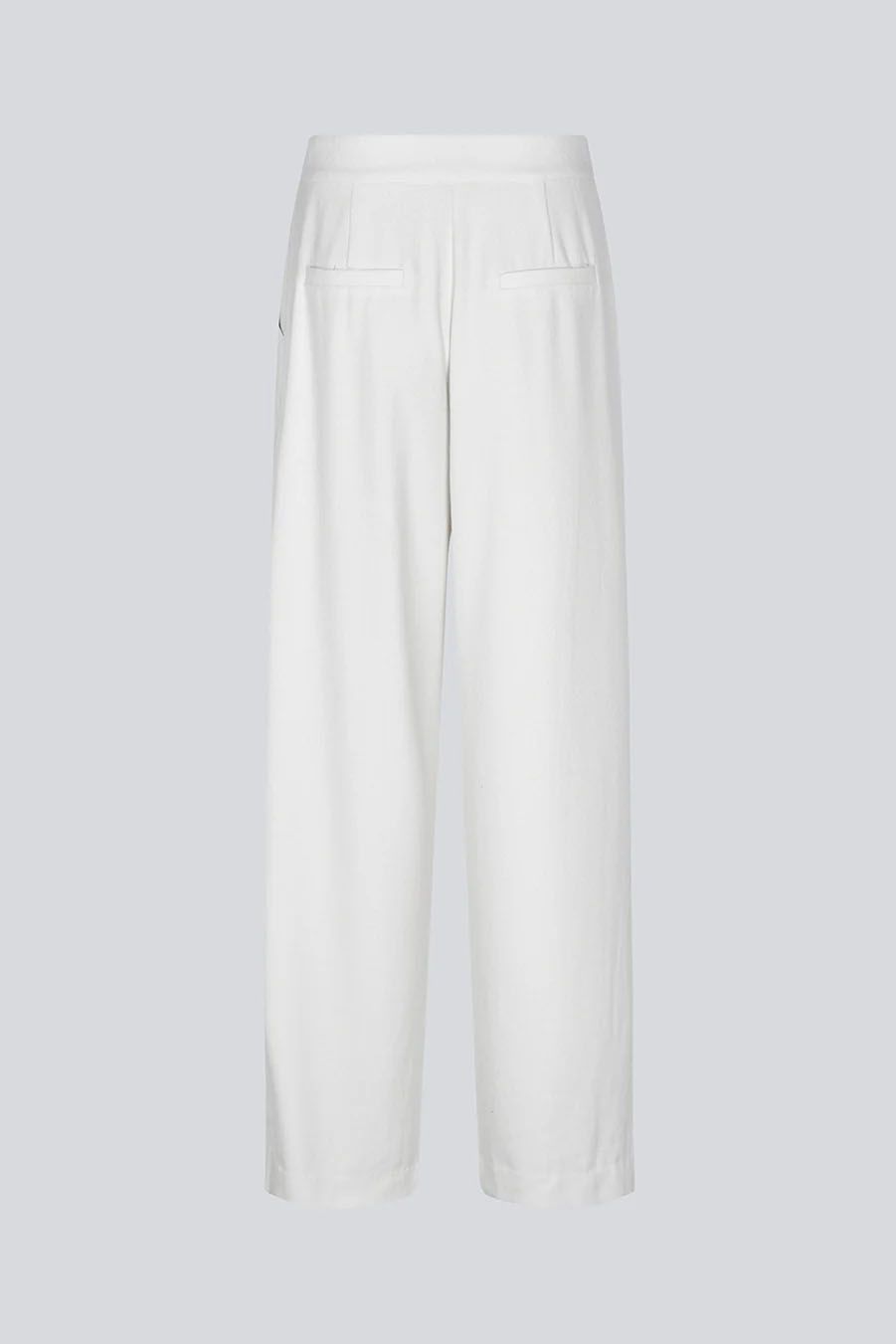 Anzughose aus strukturiertem Material mit weitem Bein und Falten an der Spitze. KarterMD Hose in SOft White hat eine mittelhohe Taille, Reißverschluss, Seitentaschen und Paspeltaschen auf der Rückseite.