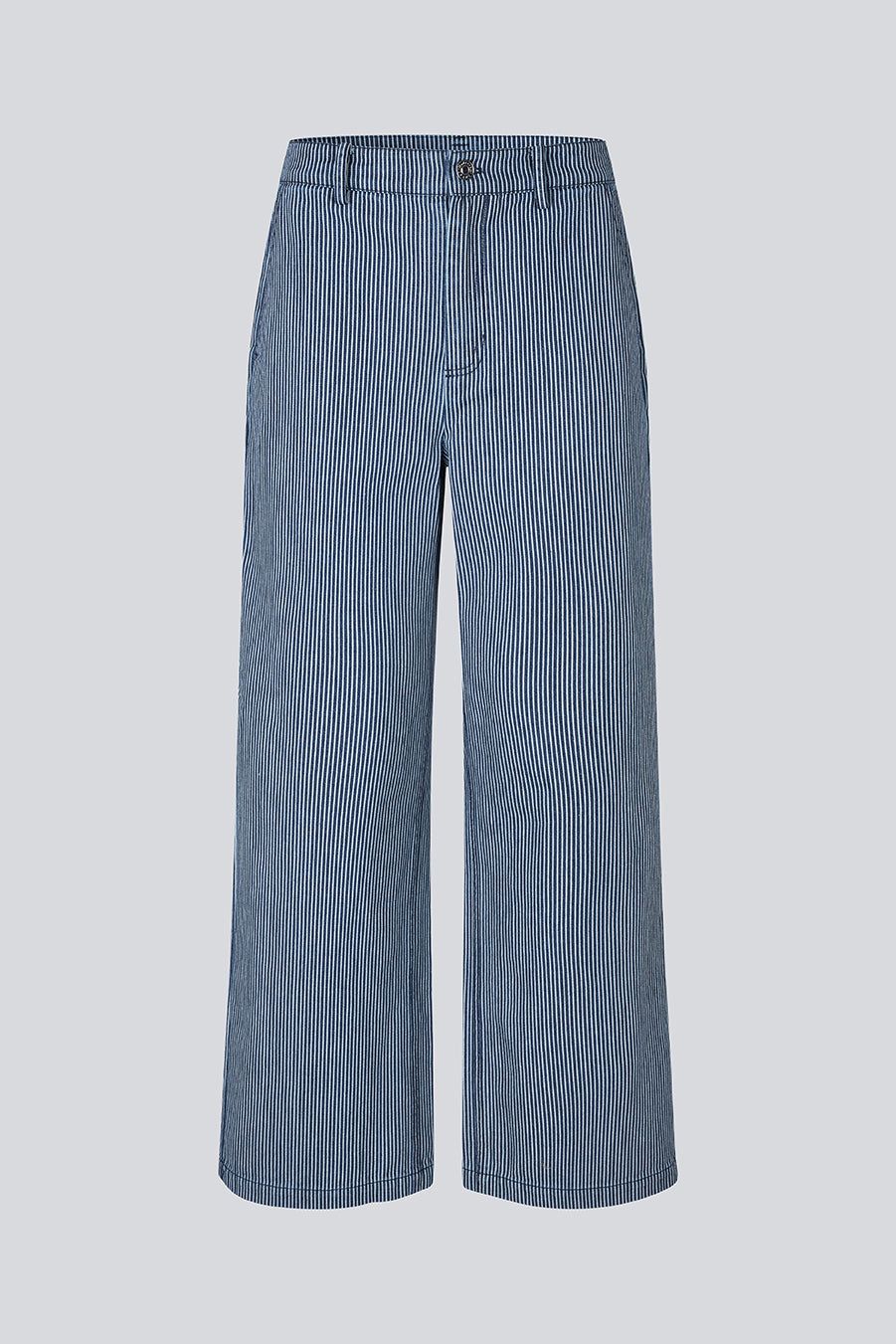 Loose pants in denim with a working inspired look. MagdalenaMD pants has a high waist, sidepockets and wide legs.