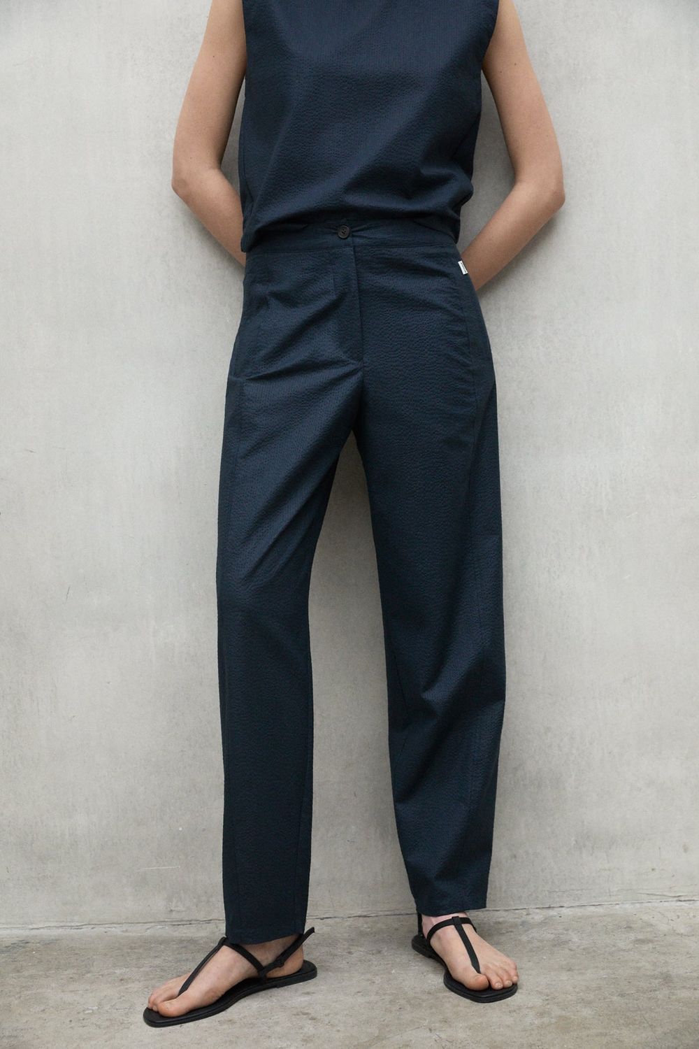 Leichtigkeit, Atmungsaktivität und Frische für den Sommer. Die Ripoll-Hose präsentiert unseren ersten Seersucker, hergestellt aus nachhaltig gewonnenem Holzstoff, der eine weiche, luftige Textur mit einem raffinierten Fall bietet. Gefertigt aus 50 % TENCEL™ Lyocell und 50 % Bio-Baumwolle, stammen diese Fasern aus zertifizierten Wäldern und geschlossenen Kreislaufprozessen, die den höchsten Umweltstandards entsprechen. Mit einer hohen Taille und einem elastischen Bund hinten, bieten sie sowohl Struktur als auch Komfort – perfekt für jede Gelegenheit und verleihen deinem Look einen eleganten Touch.