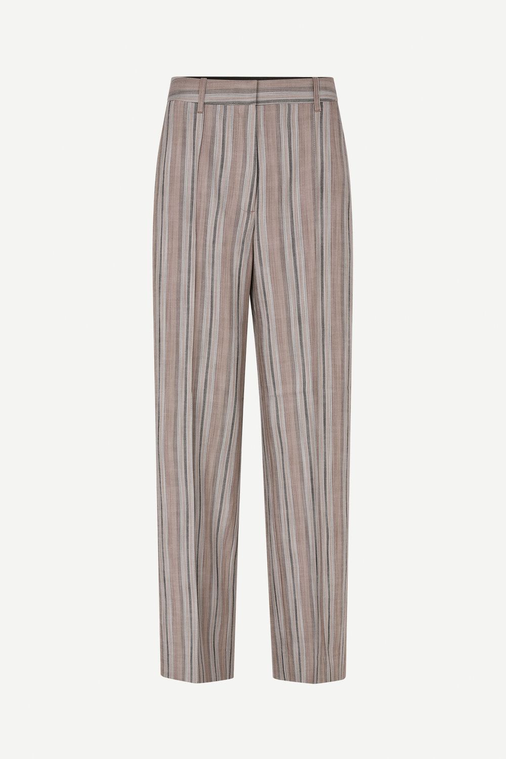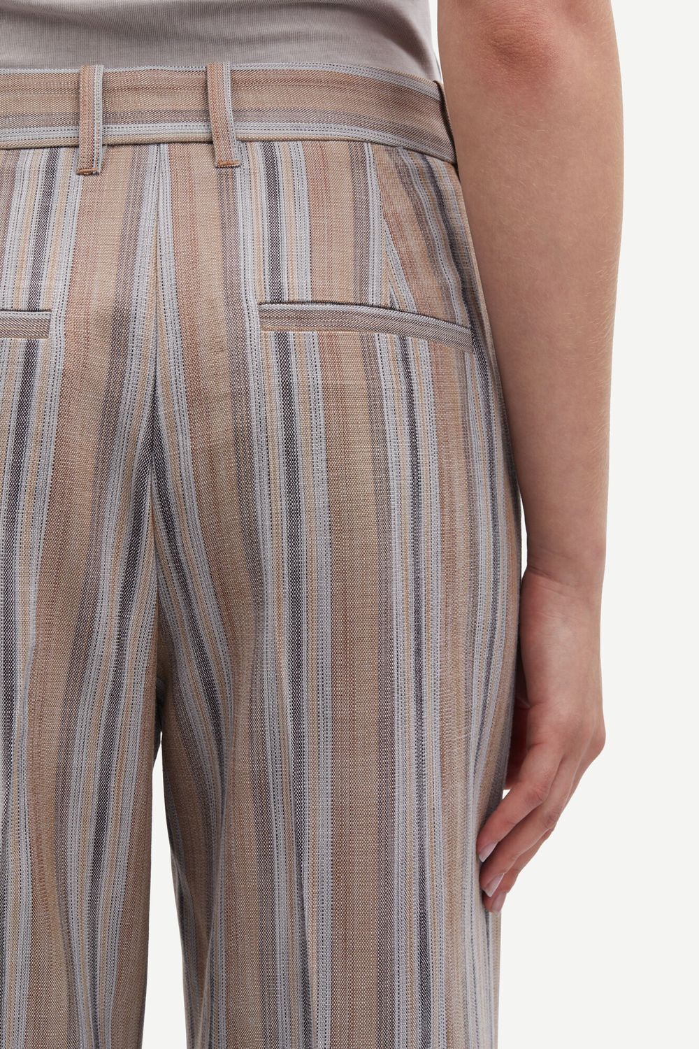 Hochtaillierte Hose mit normaler Passform und ausgestelltem Bein. Haken- und Reißverschluss auf der Vorderseite. Seitliche Eingrifftaschen auf der Vorderseite und Leistentaschen auf der Rückseite. Gürtelschlaufen und Bügelfalten. Das Hauptfutter besteht aus 100% Baumwolle. Das Hauptmaterial wird in Portugal aus einer elastischen Mischung mit LENZING™ ECOVERO™ Viskose hergestellt.