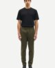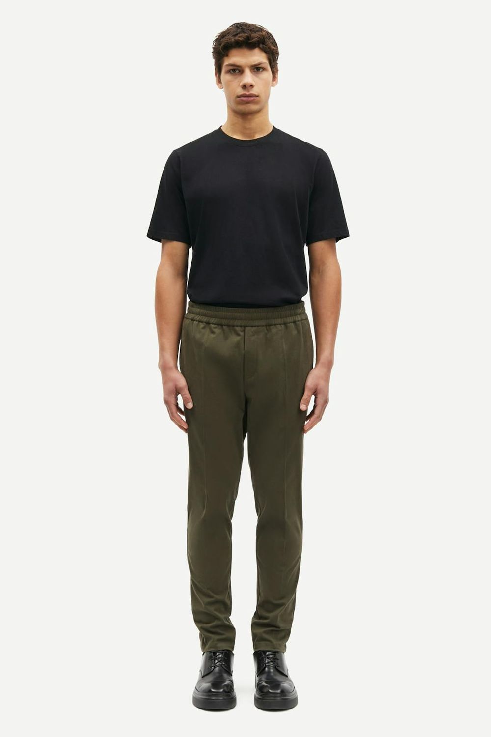 Hose mit schmaler Passform und eng zulaufendem Bein. Elastischer Kordelzug im Bund. Seitliche Eingrifftaschen auf der Vorderseite und Leistentasche mit Reißverschluss auf der Rückseite. Das Hauptmaterial besteht aus einem elastischen Gemisch mit Bio-Baumwolle.
