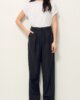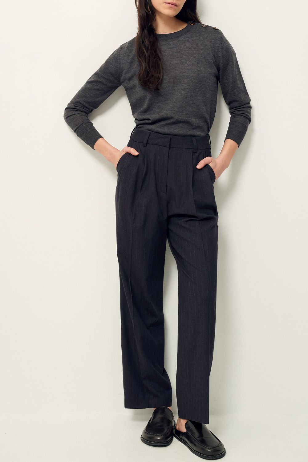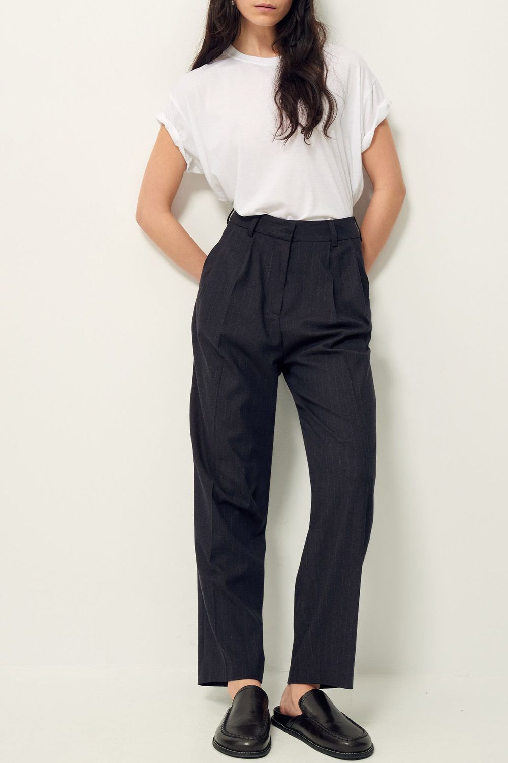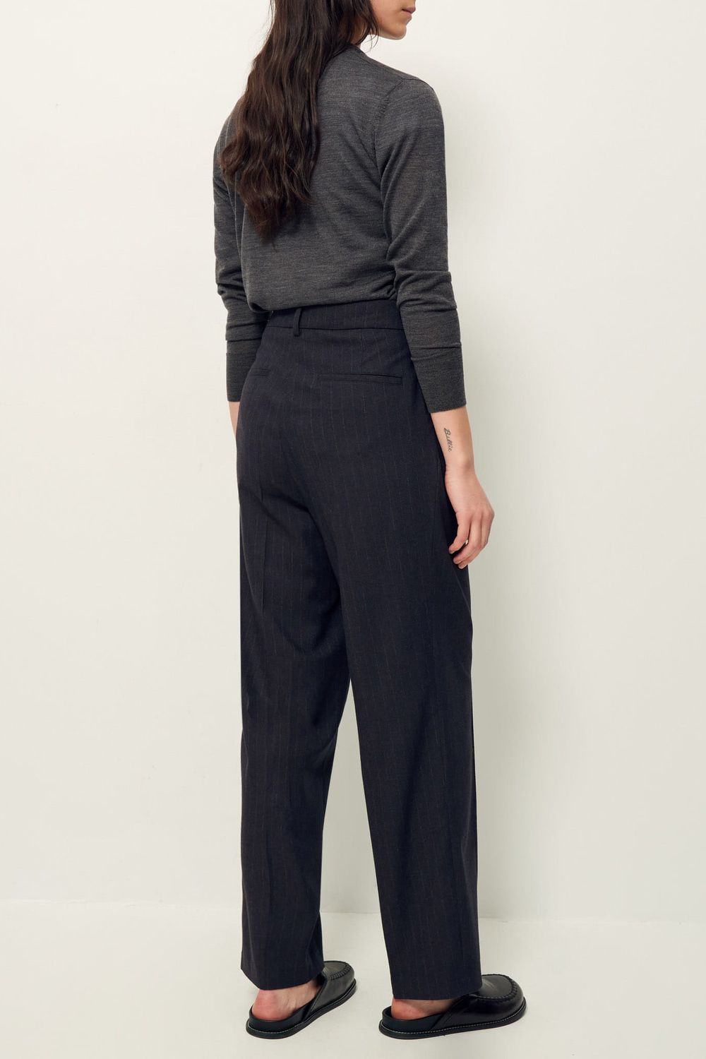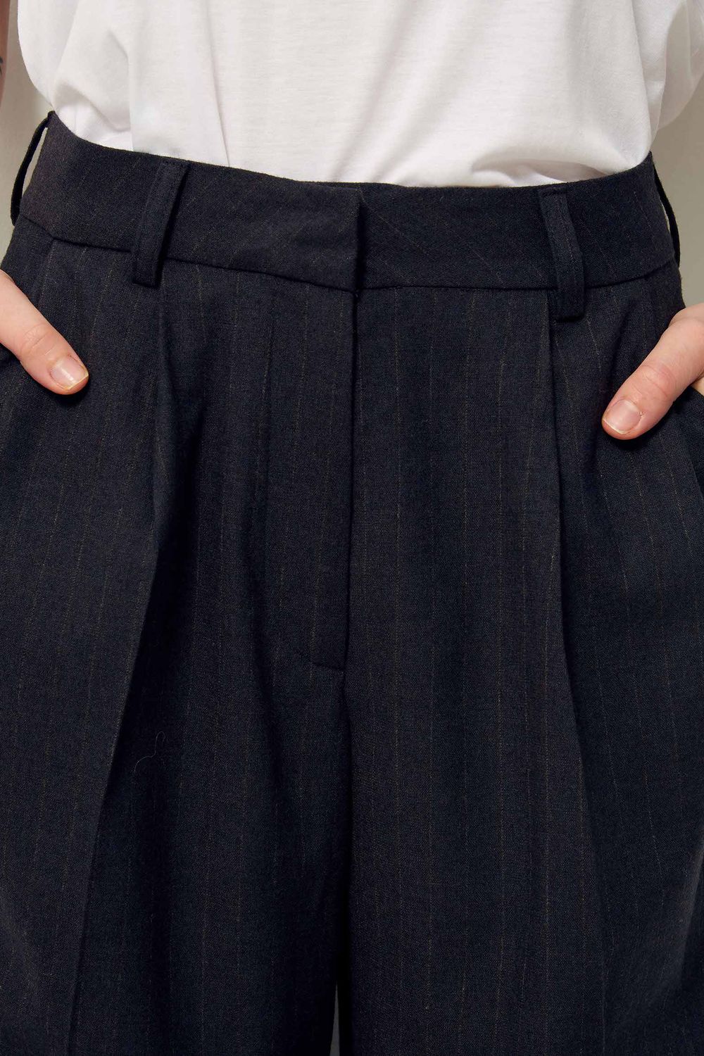 Gerade Schneiderhose mit Legefalten aus Flanell mit zarten Tennisstreifen, italienische Webarbeit.