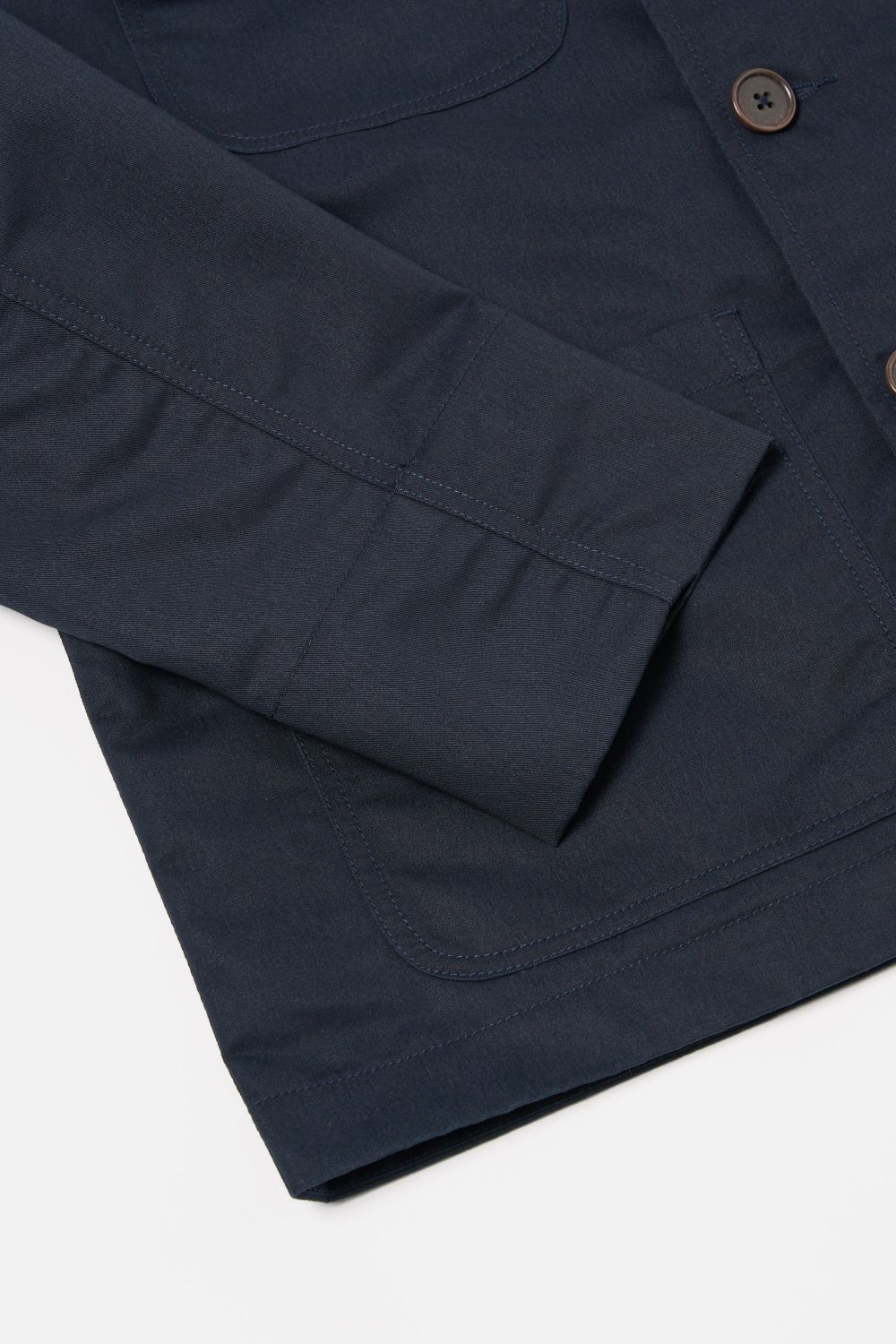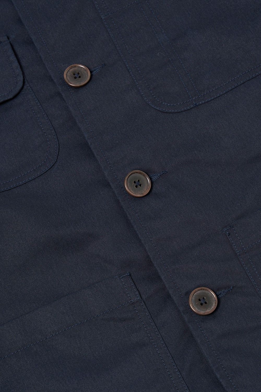 - Zwei Brusttaschen: Eine aufgesetzte; eine kleinere mit Knopfklappe