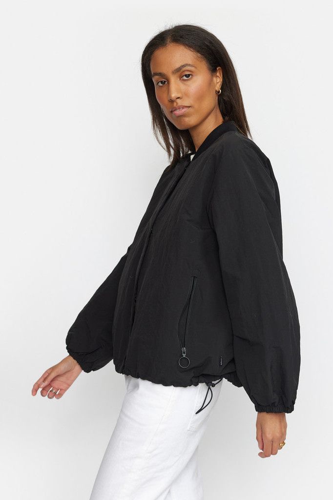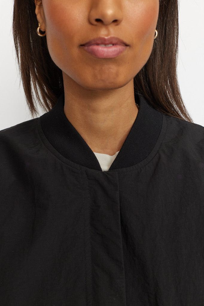Diese leichte Bomberjacke in dezentem Cropped-Design ist aus einem knackigen Nylongewebe gefertigt. Die verdeckte Reißverschlussleiste verleiht der Jacke eine diskrete Funktionalität, und der charakteristische Ring-Reißverschluss-Puller an den Seitentaschen gibt der Jacke einen lustigen Twist. Die Jacke hat den kultigen Bomberkragen in weicher, fester Rippqualität, und der untere Saum kann mit einem Kordelzug gerafft werden, was ein vielseitiges Styling ermöglicht. Die Ärmel sind leicht ballonförmig und am unteren Ende mit einem weichen, bequemen Gummibund gerafft. Die Jacke ist mit einem glatten, Ton in Ton gehaltenen Stoff aus recyceltem Polyester gefüttert, und ein diskretes Markenetikett in der Seitennaht rundet den Look dieser Jacke ab.