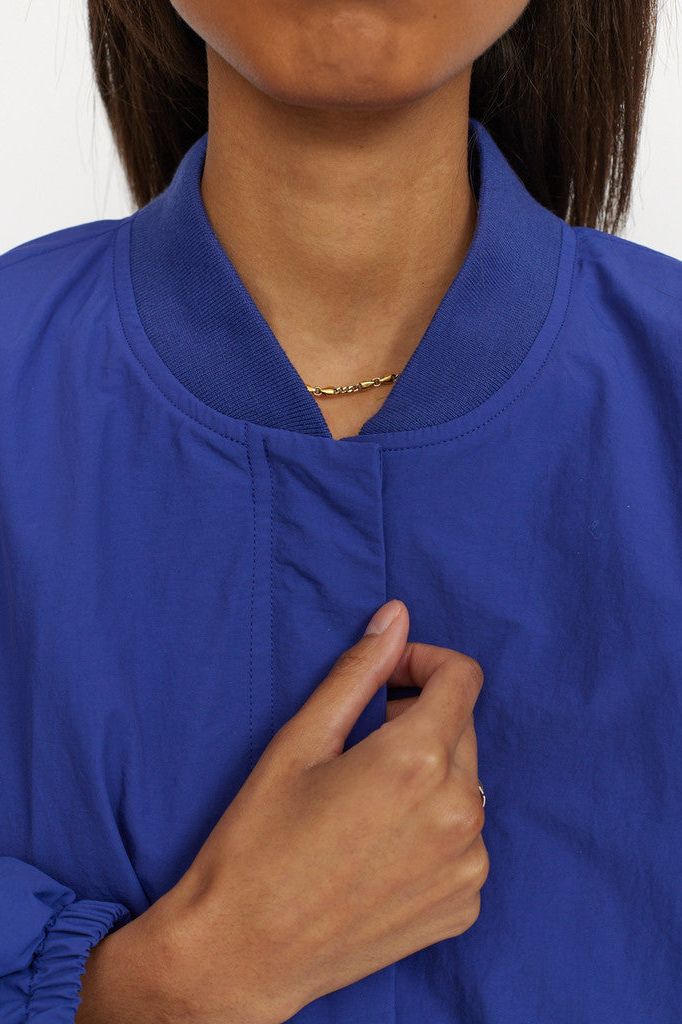 Diese leichte Bomberjacke in dezentem Cropped-Design ist aus einem knackigen Nylongewebe gefertigt. Die verdeckte Reißverschlussleiste verleiht der Jacke eine diskrete Funktionalität, und der charakteristische Ring-Reißverschluss-Puller an den Seitentaschen gibt der Jacke einen lustigen Twist. Die Jacke hat den kultigen Bomberkragen in weicher, fester Rippqualität, und der untere Saum kann mit einem Kordelzug gerafft werden, was ein vielseitiges Styling ermöglicht. Die Ärmel sind leicht ballonförmig und am unteren Ende mit einem weichen, bequemen Gummibund gerafft. Die Jacke ist mit einem glatten, Ton in Ton gehaltenen Stoff aus recyceltem Polyester gefüttert, und ein diskretes Markenetikett in der Seitennaht rundet den Look dieser Jacke ab.