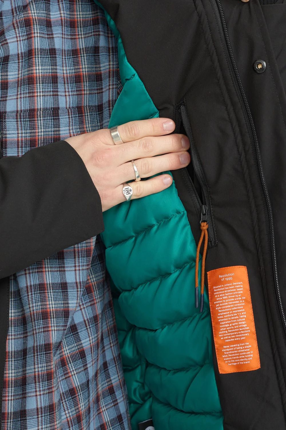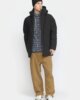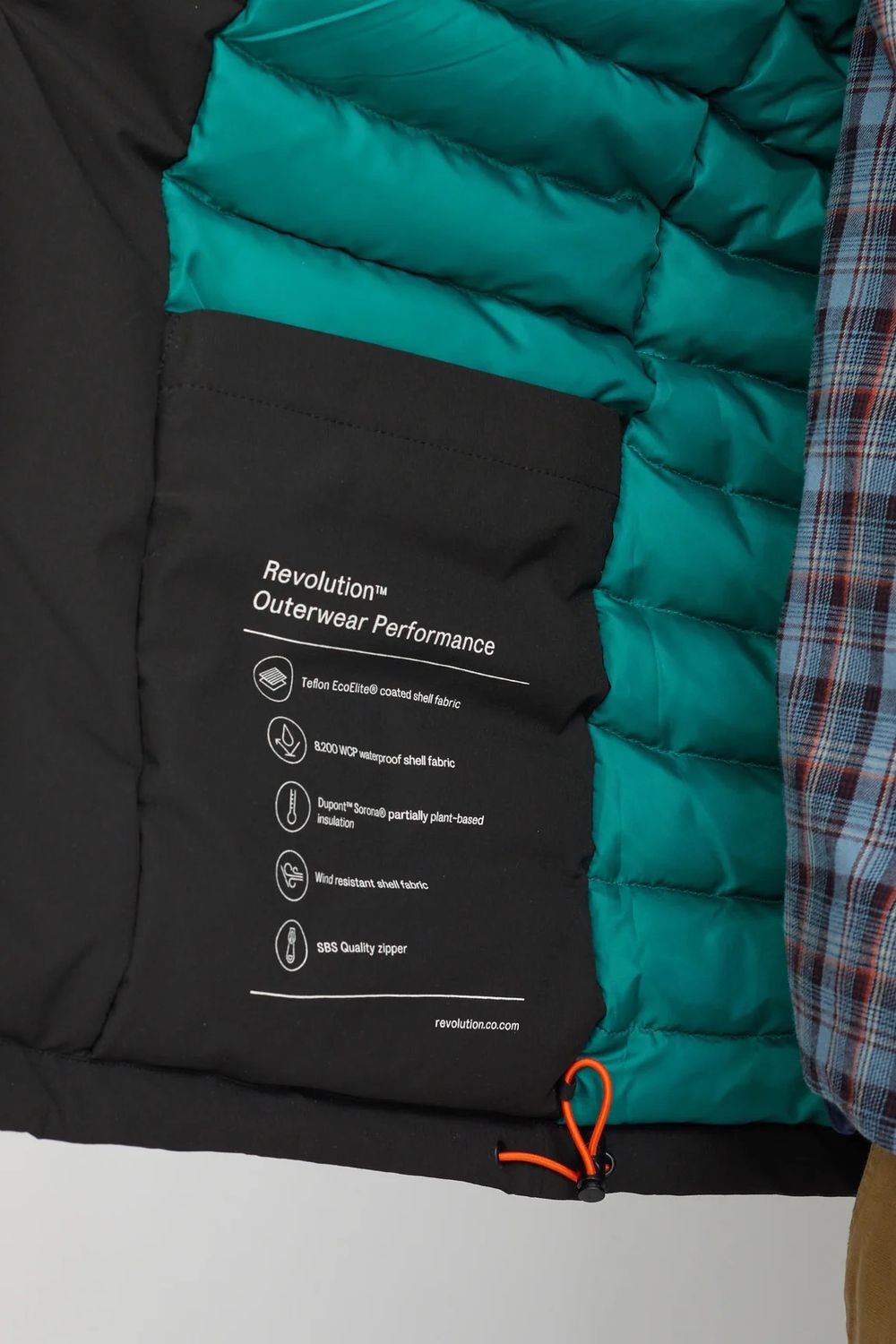 Mittellanger, schwerer Daunenmantel aus dünnem recyceltem Polyestergewebe mit dezentem Ripstop-Muster. Der Mantel verfügt über eine abnehmbare Kapuze und markante Schnittlinien an Schultern und Ärmeln. Die Eingrifftaschen sind mit warmem Fleece gefüttert, um zusätzlichen Komfort zu bieten, und die Rippbündchen an den Ärmeln sowie der verstellbare Saum halten den Wind ab und sorgen für wohlige Wärme an kalten Tagen. Die regenabweisende Teflon EcoElite-Beschichtung ist umweltfreundlich und frei von schädlichen Fluorcarbonen. Der Mantel hat innere Daunenkammern, die mit warmen und stark komprimierbaren DuPont Sorona-Fasern gefüllt sind, einer Isolierung, die teilweise aus erneuerbaren pflanzlichen Rohstoffen besteht und mit besonderer Rücksicht auf die Umwelt hergestellt wird.