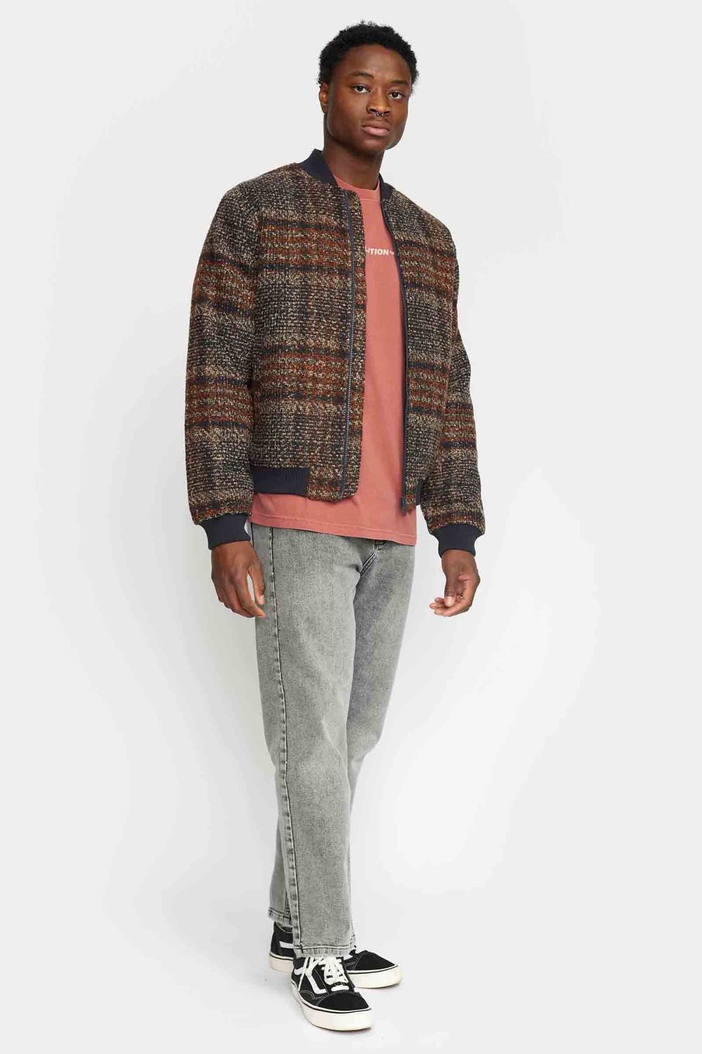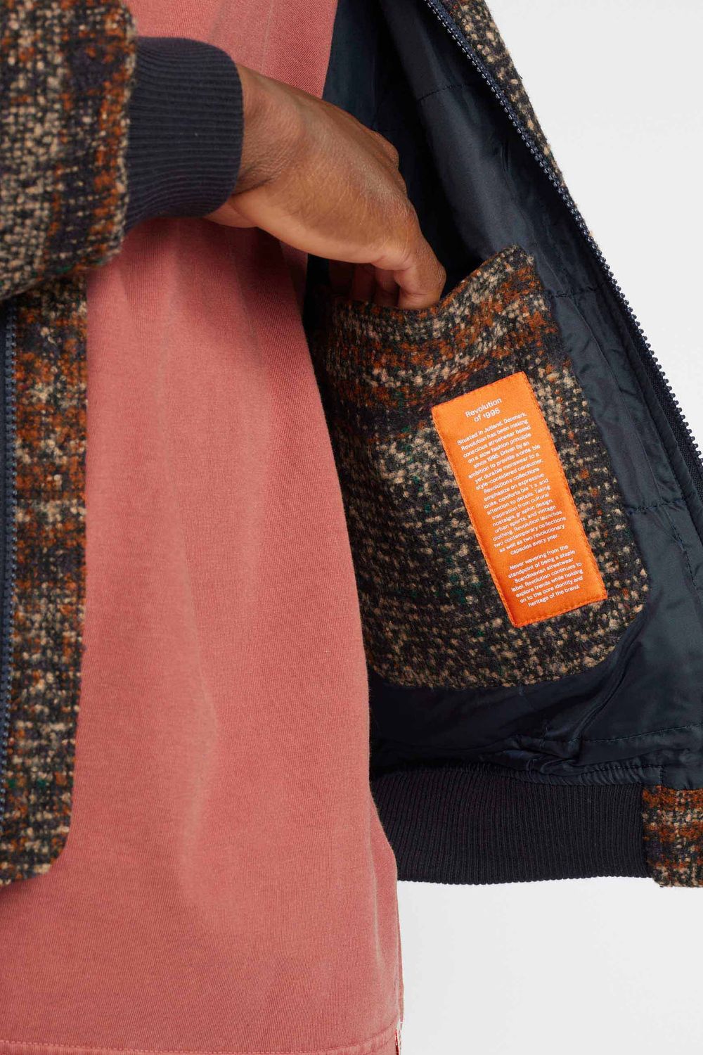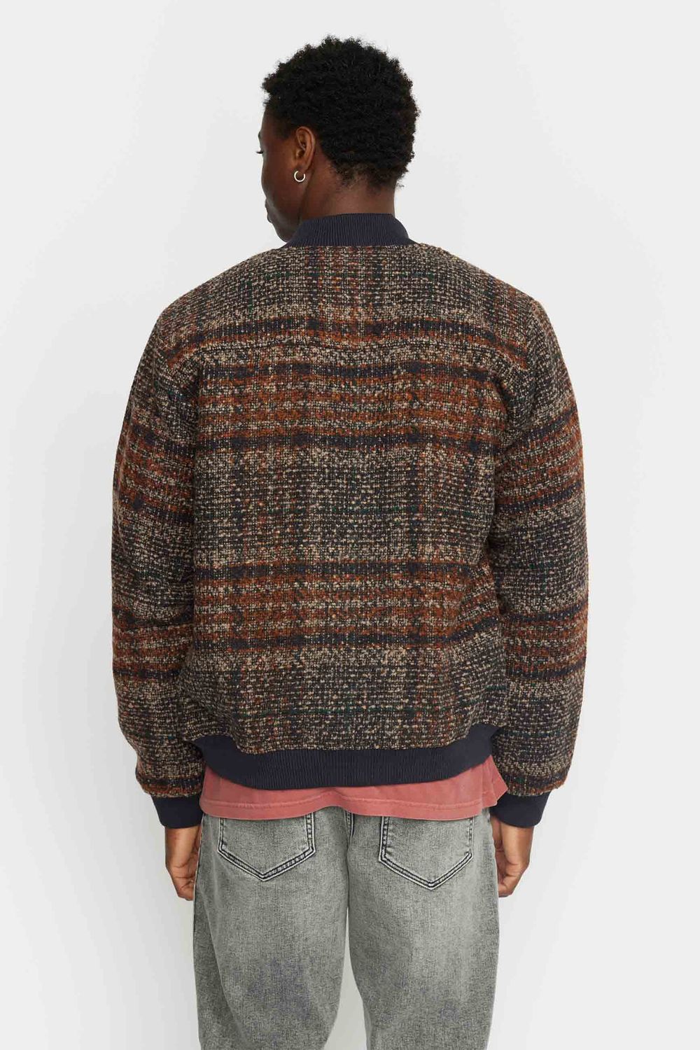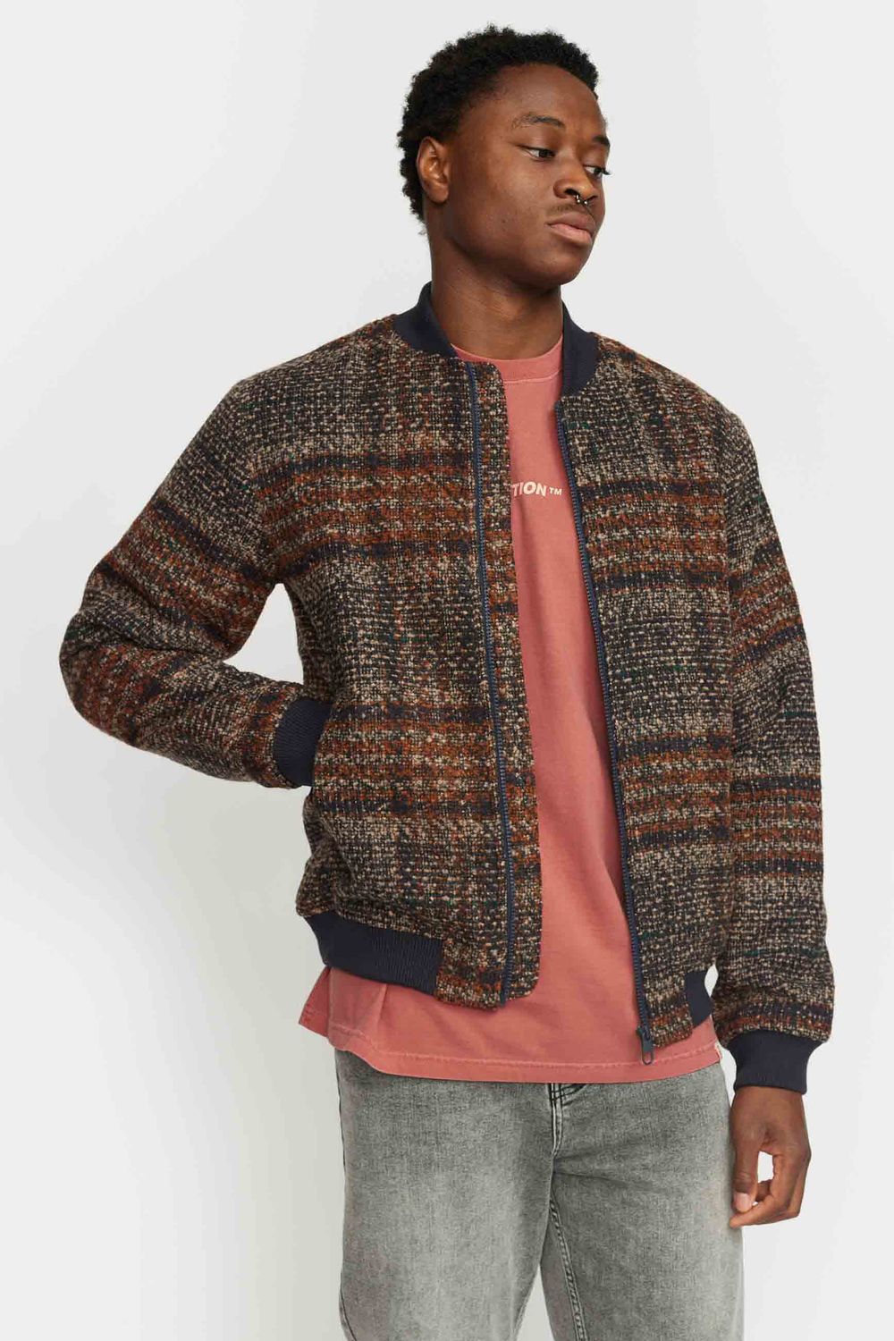 Kurze Bomberjacke aus einem schweren, strukturierten Stoff mit großem Karomuster. Die Jacke ist mit dem klassischen Bomberjacken-Rippkragen, dem gerafften, gerippten Bund und den passenden Bündchen ausgestattet. Die mit Fleece gefütterten Taschen sorgen zusammen mit der leichten Wattierung für zusätzlichen Komfort und machen die Jacke perfekt für die Herbstsaison.