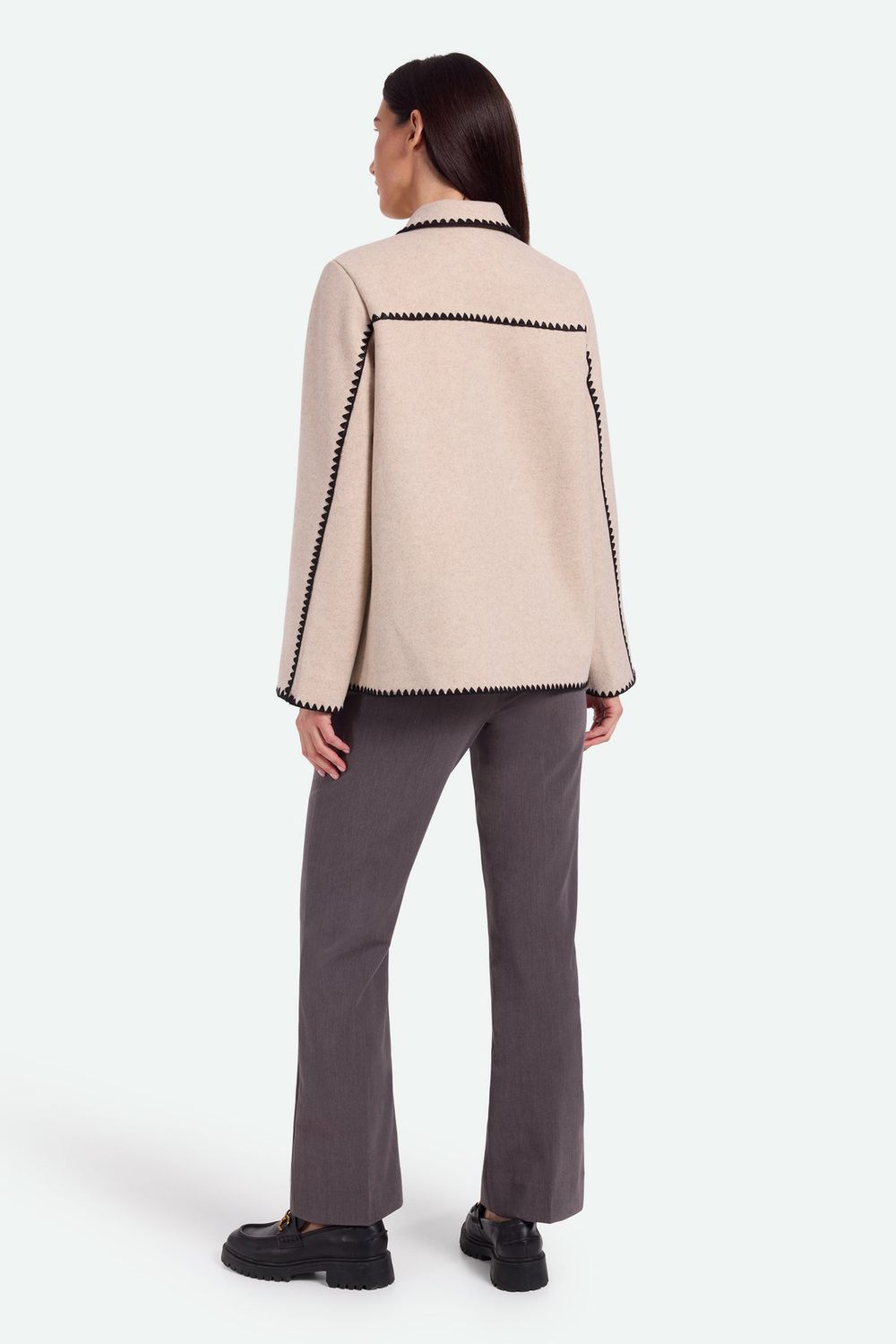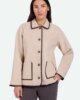 Johana ist eine feminine Übergangsjacke aus 100% Polyester für eine angenehme und komfortable Qualität. Die Jacke hat eine lockere Passform und ist mit kontrastierenden gestickten Kanten, zwei Vordertaschen, einem Kragen und einem Knopfverschluss versehen. Das Model ist 179 cm groß und trägt Größe 36.