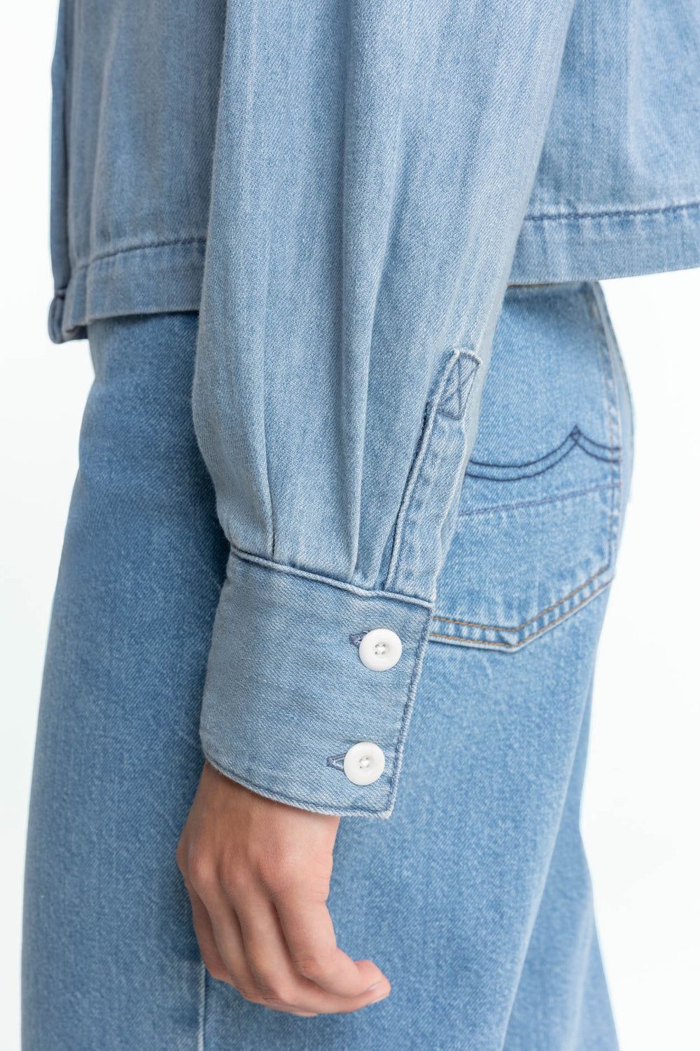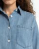Eine Button-up-Bluse in normaler Passform mit langen Ärmeln, zwei Brusttaschen und plissierten Ärmeln und Rücken.