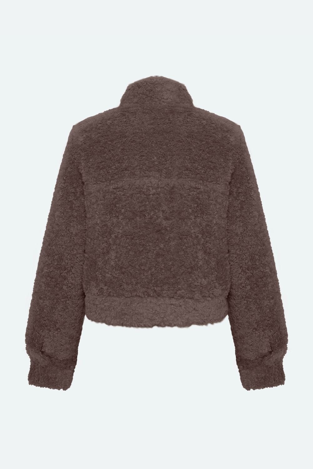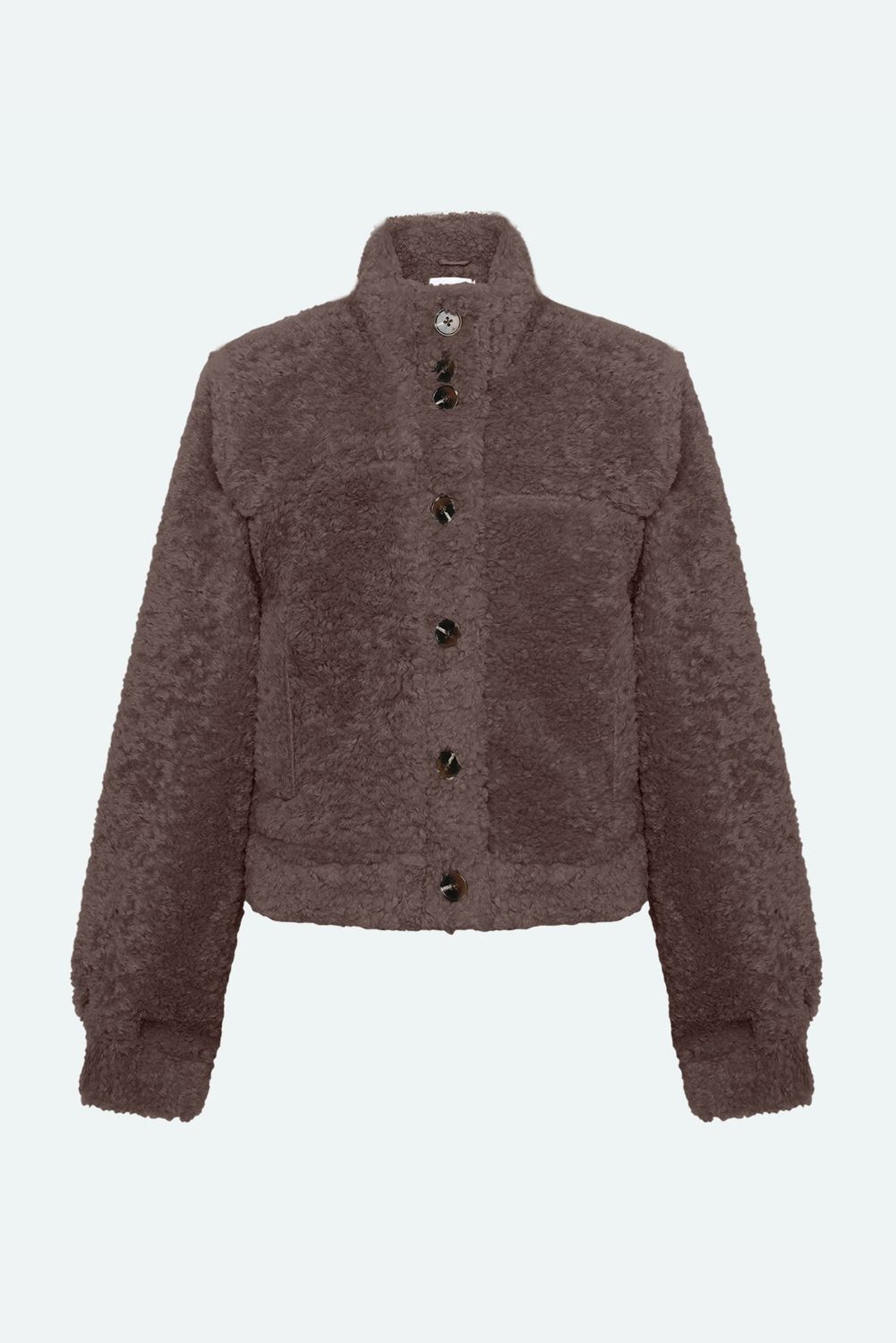 Lesari ist eine Übergangsjacke aus Teddy-Stoff aus 100% Polyester für eine flauschige und weiche Qualität. Die Teddyjacke hat eine normale Passform und ist mit einem mittelhohen Halsausschnitt, Knopfverschluss und zwei Seitentaschen ausgestattet.