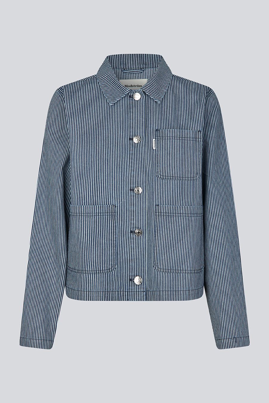 Loose jacket in cotton denim. MagdalenaMD jacket has a buttonclosure, tree front pockets and long loose sleeves.