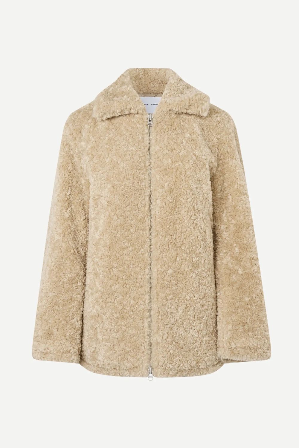 Jacke aus Lammfell-Imitat mit lockerer Passform und Oversize-Kragen. Zwei-Wege-Reißverschluss auf der Vorderseite. Seitliche Schubtaschen auf der Vorderseite und Paspeltasche auf der Innenseite. Leichte Polsterung. Komplett gefüttert. Hauptmaterial aus 100 % recyceltem Polyester.