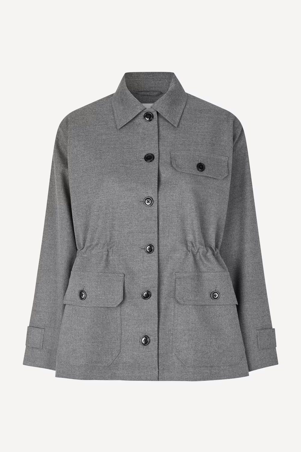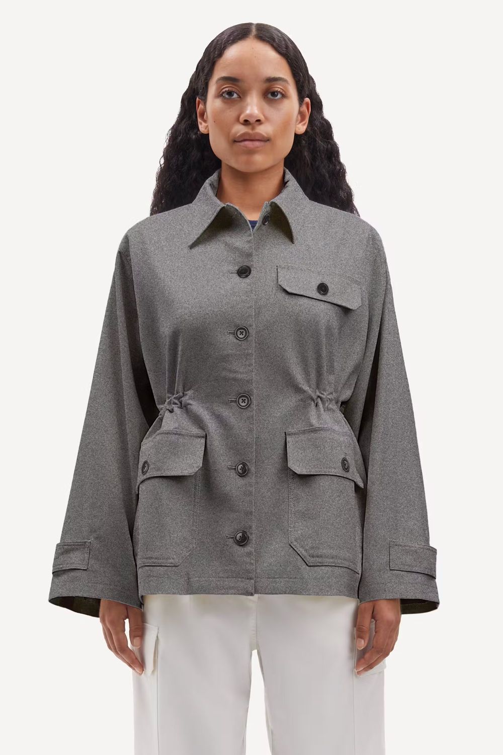 Jacke mit normaler Passform und Stehkragen. Knopfverschluss auf der Vorderseite und Kordelzug zur Größenanpassung auf der Innenseite. Aufgesetzte Taschen mit Knöpfen auf der Vorderseite und falsche Brusttasche. Verstellbare Manschetten mit Knöpfen. Innenfutter aus 100% recyceltem Polyester. Hauptmaterial aus einem elastischen, recycelten Polyester-Gemisch. Dieses Produkt ist GRS-zertifiziert. In jeder Phase der Lieferkette werden strenge soziale, ökologische und chemische Anforderungen erfüllt.