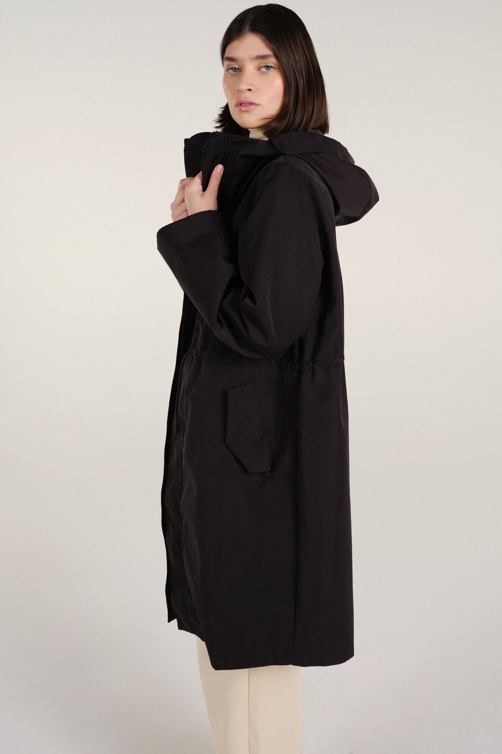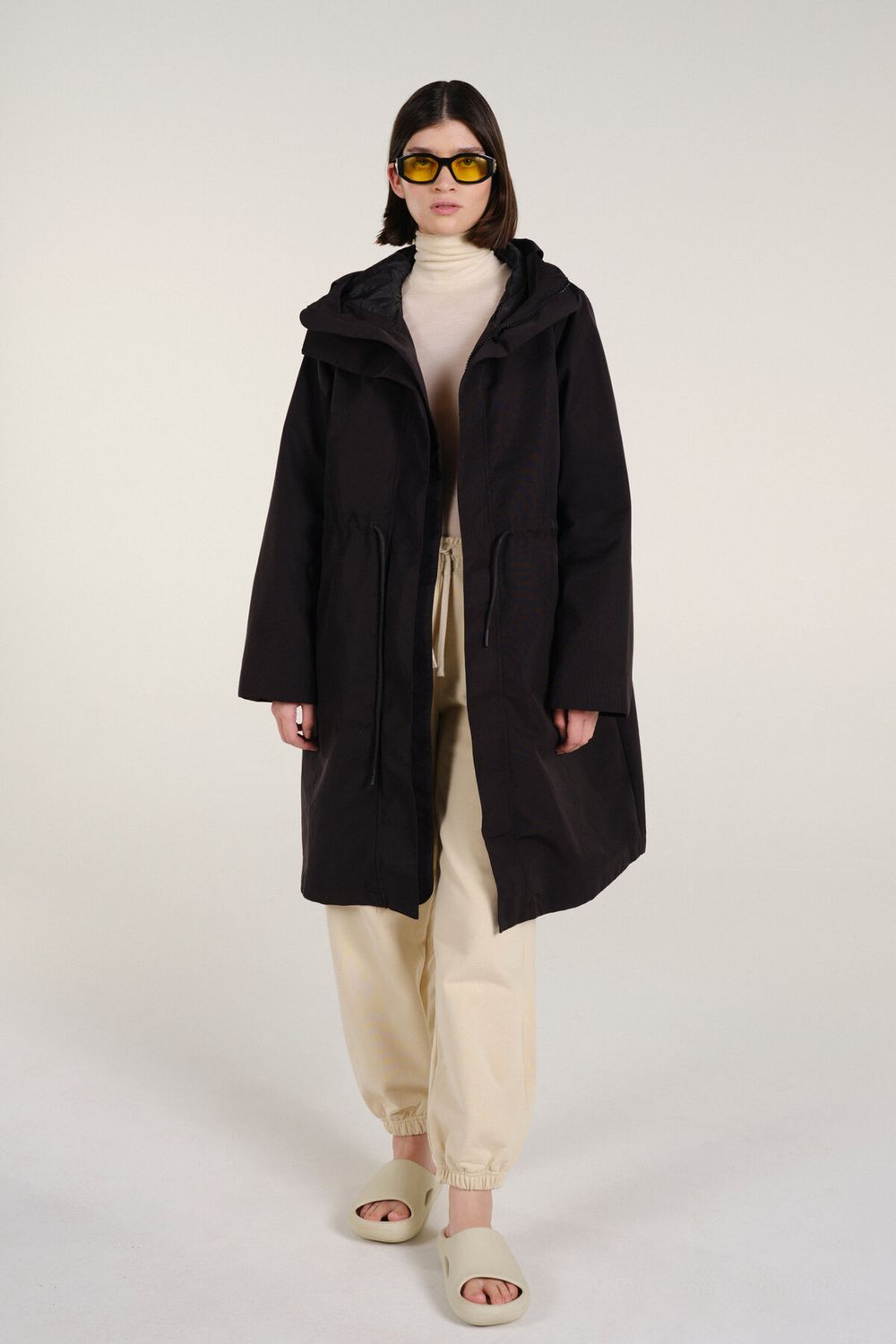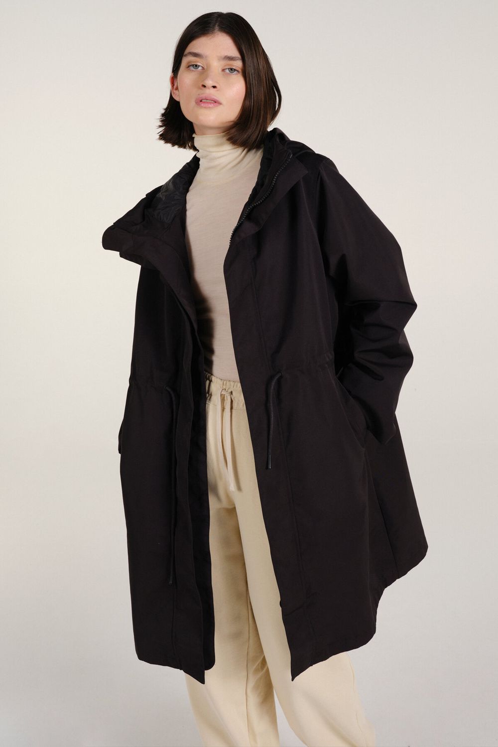 Schlicht, edel und ein bisschen minimalistisch - dieser Regenmantel vermittelt eine unkomplizierte und doch elegante Ästhetik. Mit einer verstellbaren Kapuze sowie einer verstellbaren Taille.