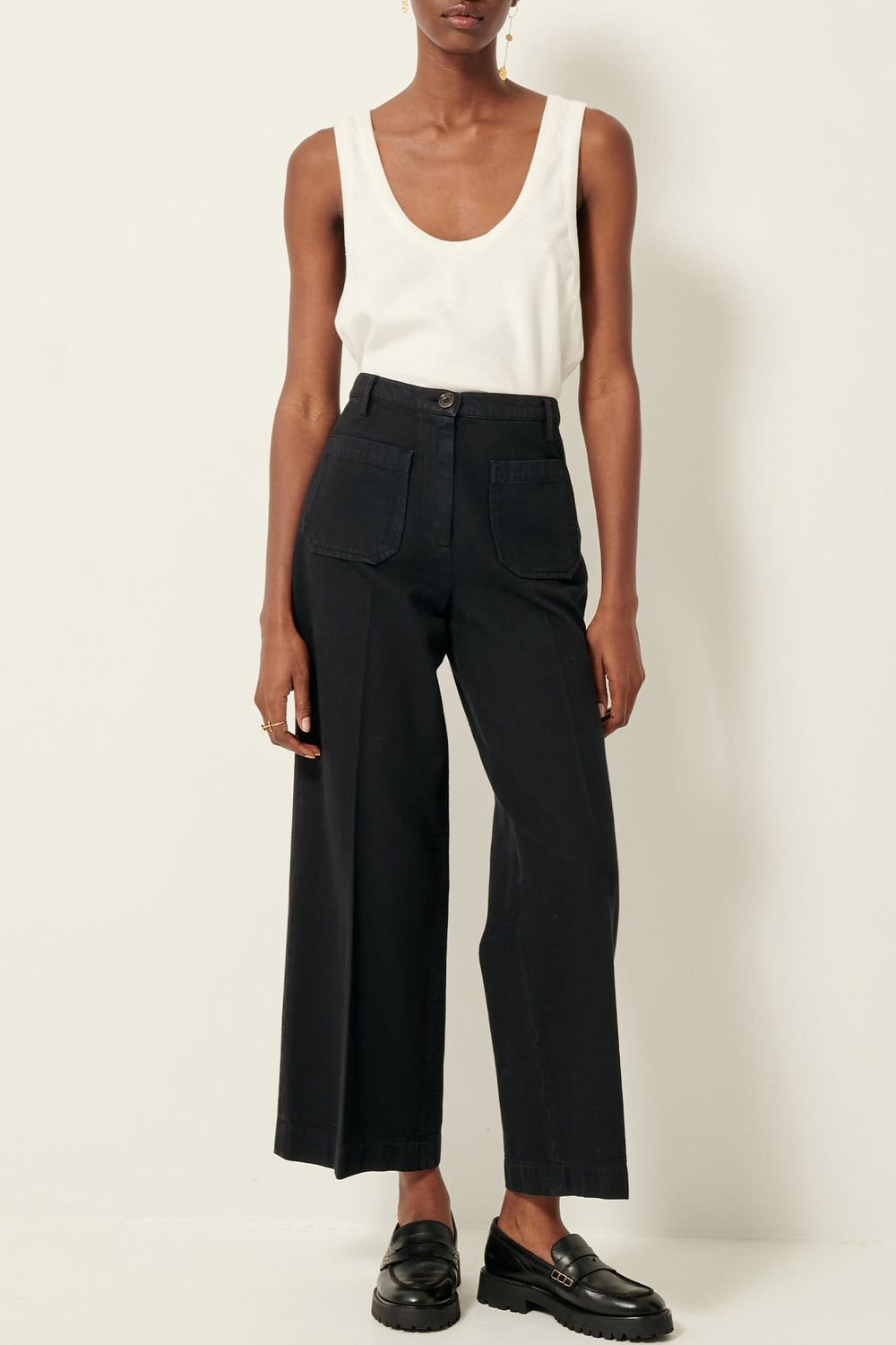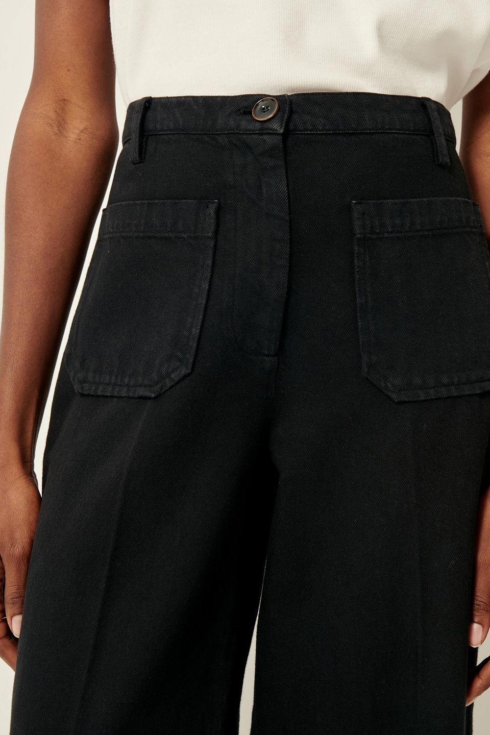 Gerade geschnittene 7/8-Bügelfaltenhose aus weichem, tauchgefärbtem Twill, spanische Webarbeit.