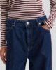 Jeans von Second Female aus dunklem Denim. Die Jeans ist aus Baumwoll-Denim mit dunkelblauer Waschung und Kontrastnähten gefertigt. Verdeckter Reißverschluss mit Knopfverschluss an der Taille. 5-Pocket-Stil. Mittelhohe Taille mit weitem, geradem Bein.