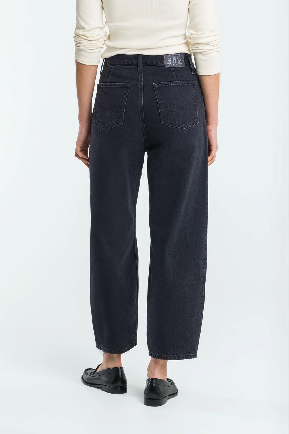 - Trimmings: Zip fly closure, recycled metal buttons