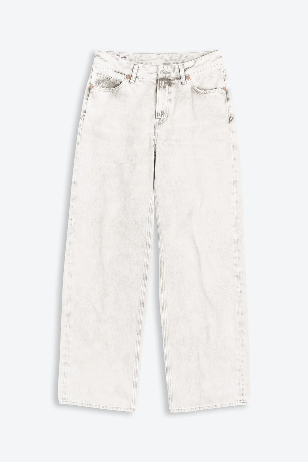 - Trimmings: Zip fly, recycled metal buttons
